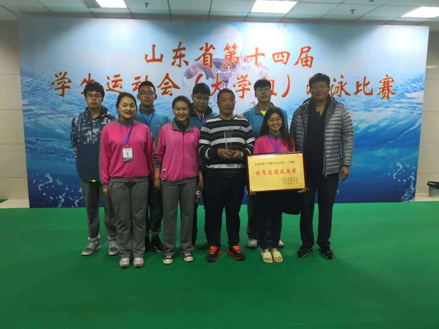 11月10-11日,由山东省体育局、山东省教育厅主办的第十四届学生运动会大学组游泳项目比赛在山东大学游泳馆举行,我校选派了9名同学参加了本次比赛。