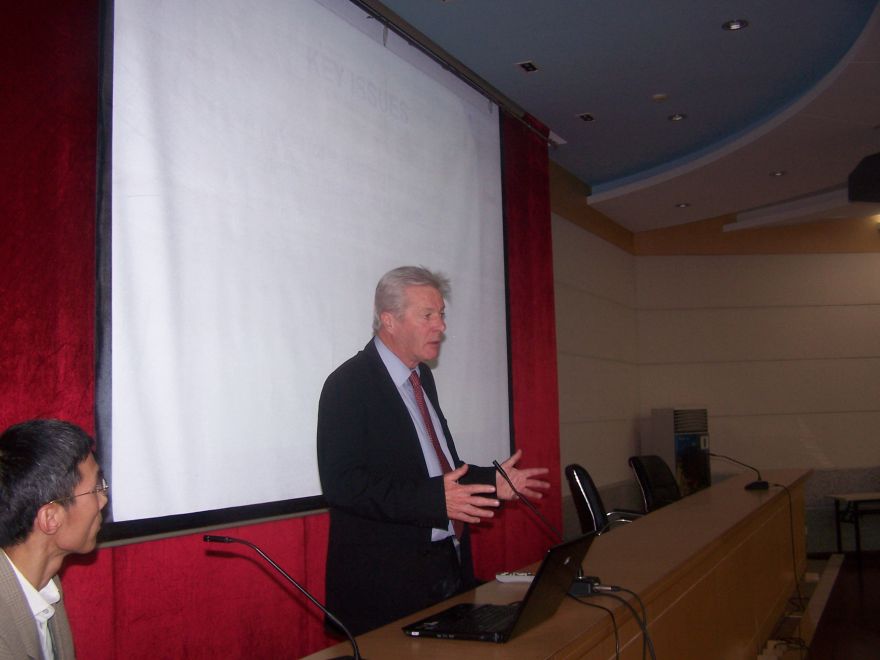 下午,克里斯·格拉顿教授在舜耕校区第六会议室做了学术报告,体育学院党总支书记刘逢翔主持报告会。格拉顿教授的精彩演讲赢得了在场师生的热烈掌声。交流环节,同学们踊跃发言,就自己关心的问题与英国专家展开了广泛而深入地探讨,整个会场气氛活跃,交流活动取得了圆满成功。