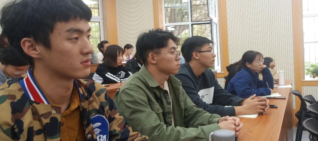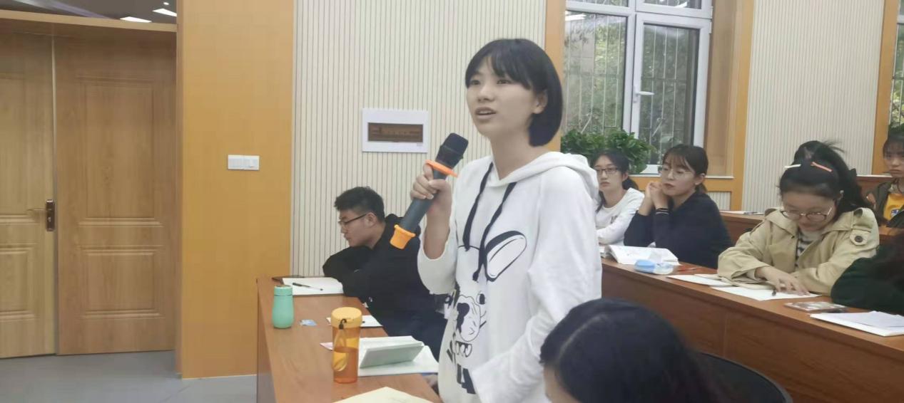 保险学院研究生会主席乔慧淼表示自己在这一节培训课上收获颇丰,祖国70年的风雨成长让他感受到了自己作为一名党员的自豪,今后会朝着更加坚定的方向努力奋斗。精算二班的卢舒同学结合当今社会问题,发表了自己的相关看法,并就“如何把孤独当作享受”的问题与姜书记进行了讨论。