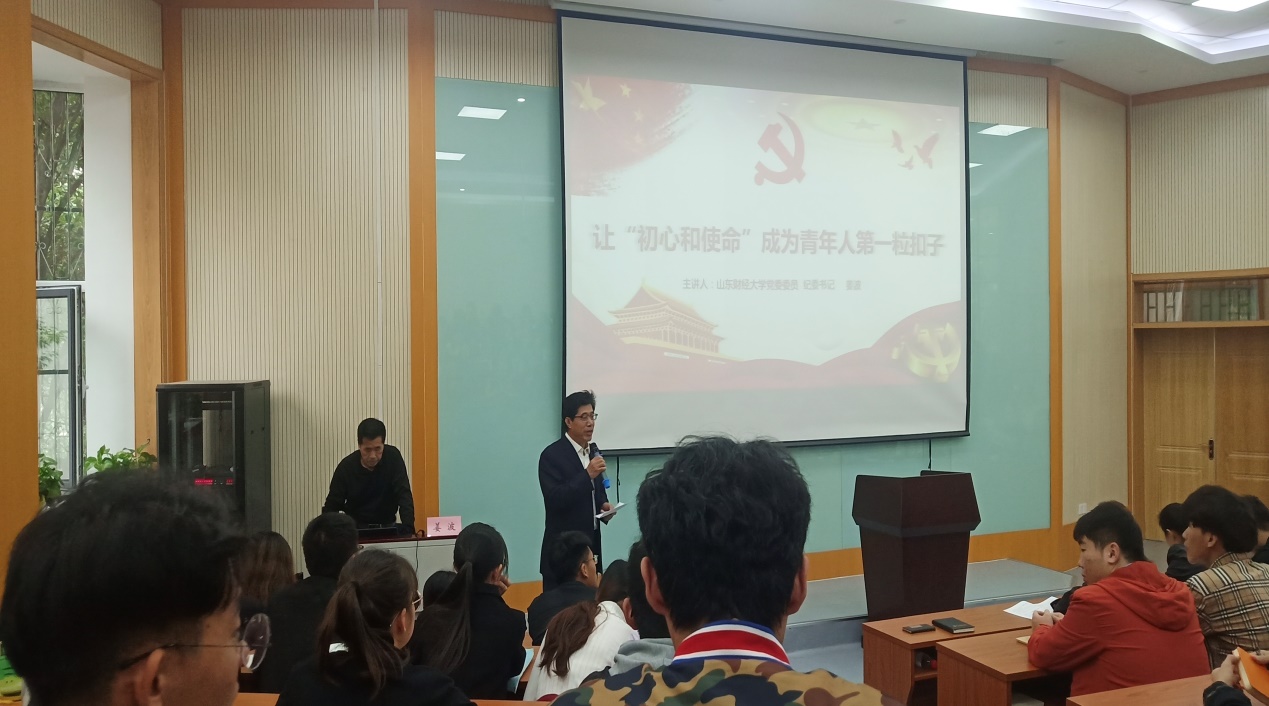 为深入开展“不忘初心,牢记使命”主题教育,10月24日下午,体育学院学生党员以及入党积极分子在舜耕校区第三阶梯教室聆听了主题为“让初心和使命成为青年人的第一粒扣子”党课培训。山东财经大学党委委员、纪委书记姜波授课。体育学院、保险学院的党政领导、党员和入党积极分子参加党课,保险学院党委书记朱传武主持。