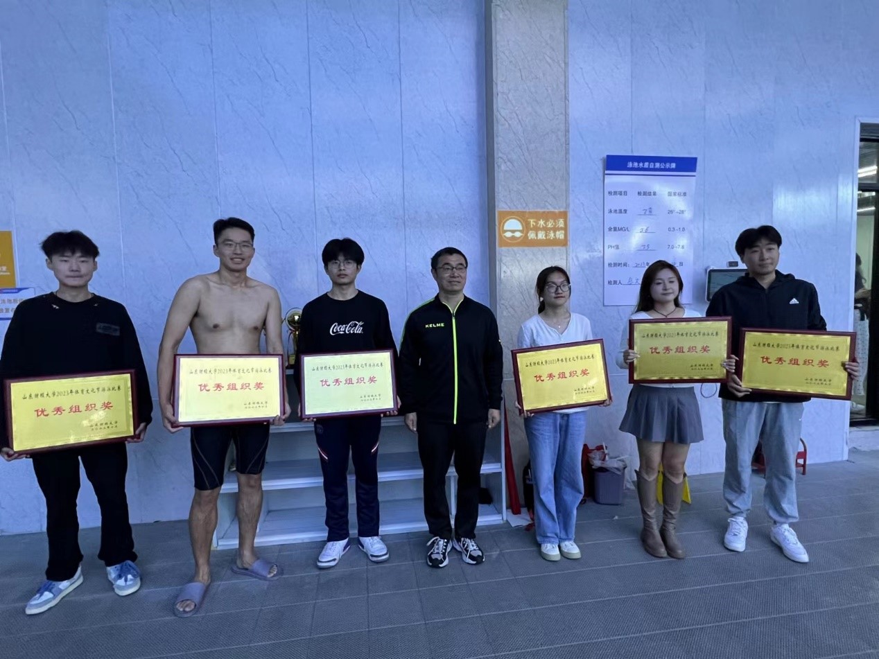 本次比赛采取线下的方式进行,选手们在水中尽情释放自己的能量,体现了选手们坚毅不拔、勇往直前的精神品质,裁判们本着公平公正公开的原则进行评分。经过激烈地角逐,管理科学与工程学院以61.5分的成绩勇夺冠军,工商管理学院、财政与税务学院分别获得亚军、季军,会计学院、文学与新闻传播学院、国际教育学院分列位列第四、五和六名。体育学院副院长韩夫苓为获奖队伍颁奖。