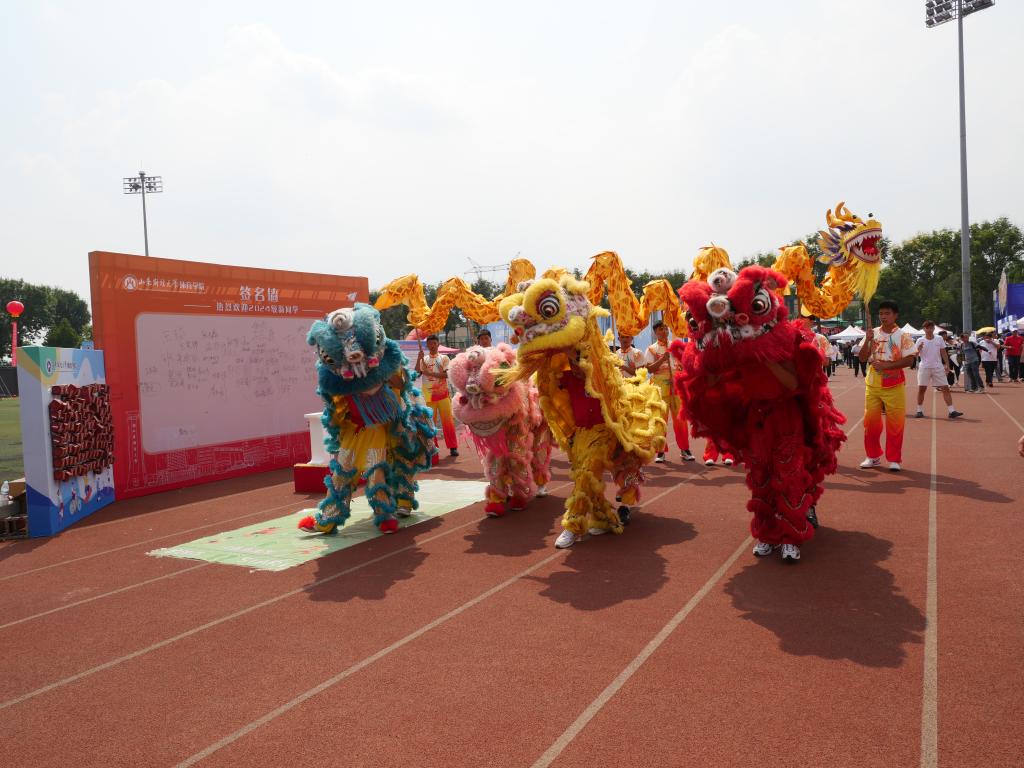 为了使新生们感受到体育学院的温暖和活力,学院特别设计了签名墙和“我爱体育”立体字,让新生们在签名留念的同时,记录下自己独特的大学记忆。此外,学院还精心设计了跳远抽奖和抽盲盒等趣味游戏,准备了丰厚的开学纪念礼,既展现了体育学院的体育特色,又增添了迎新活动的趣味性和互动性。学院的特色社团——传统体育文化社团,通过精彩的表演,向新生们表达了热烈的欢迎,让他们感受到了龙狮的神韵和迎新现场的喜庆气氛,增强了新生对学院的认同感、归属感和自豪感。同时,学院还设置了宣传展板,详细介绍了学院的基本情况、特色亮点以及近三届考研考公就业的光荣榜,帮助新生们更好地了解学院,并规划自己的未来发展。