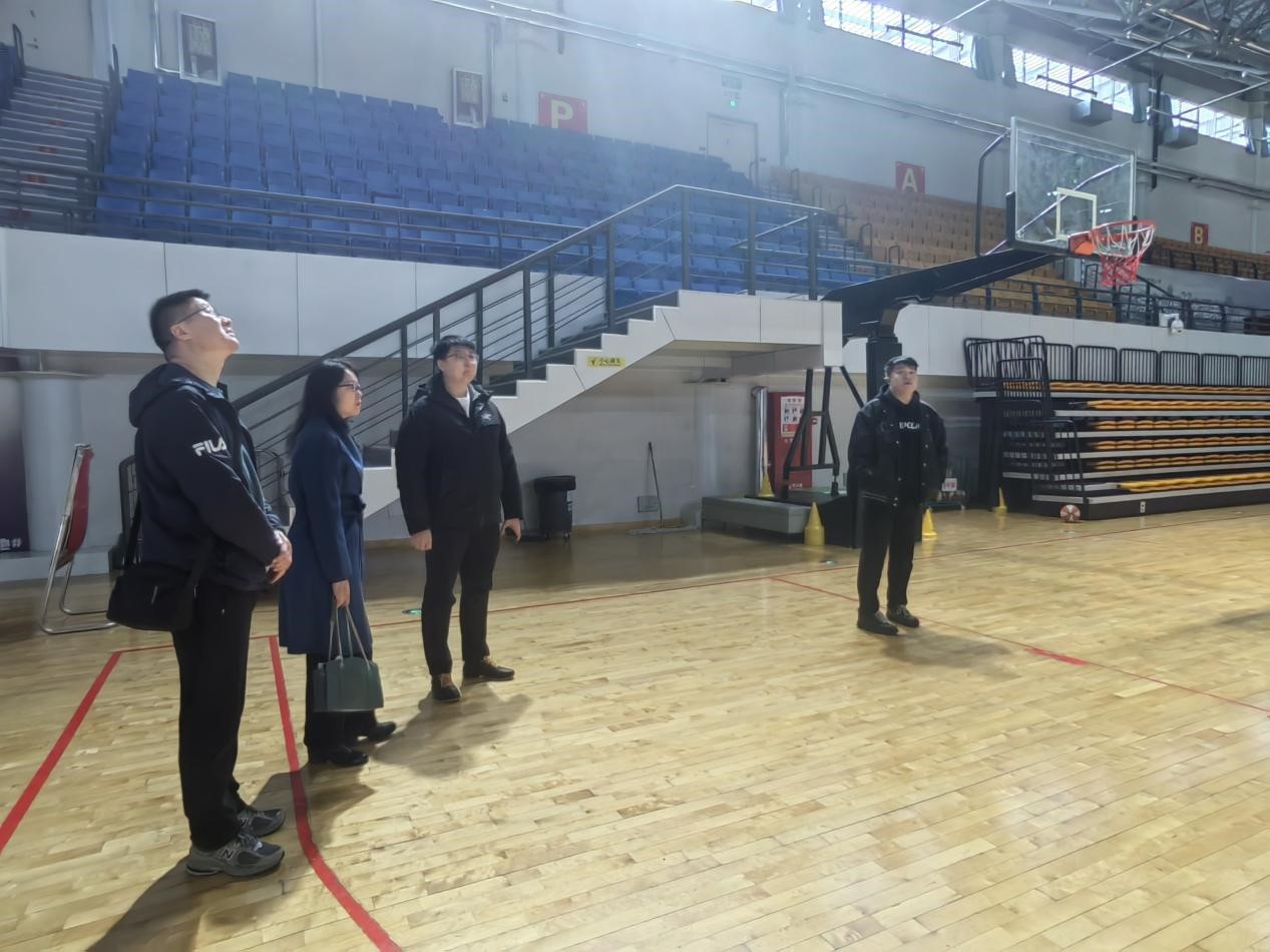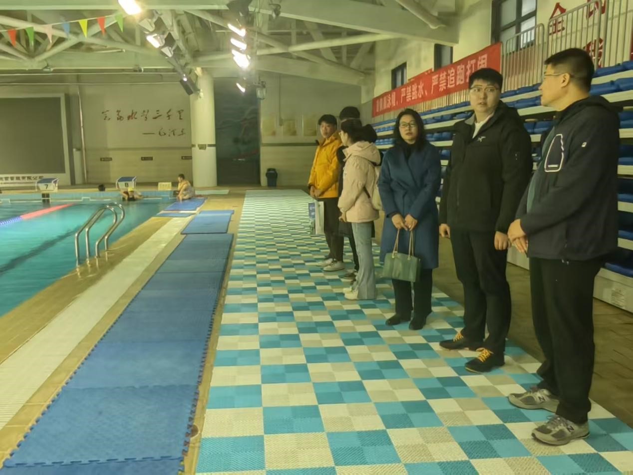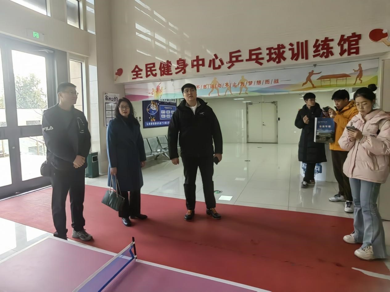 座谈会结束后,许青带领我院师生参观了长清全民健身中心,包括游泳馆、篮球馆、乒乓球室和体育场。
