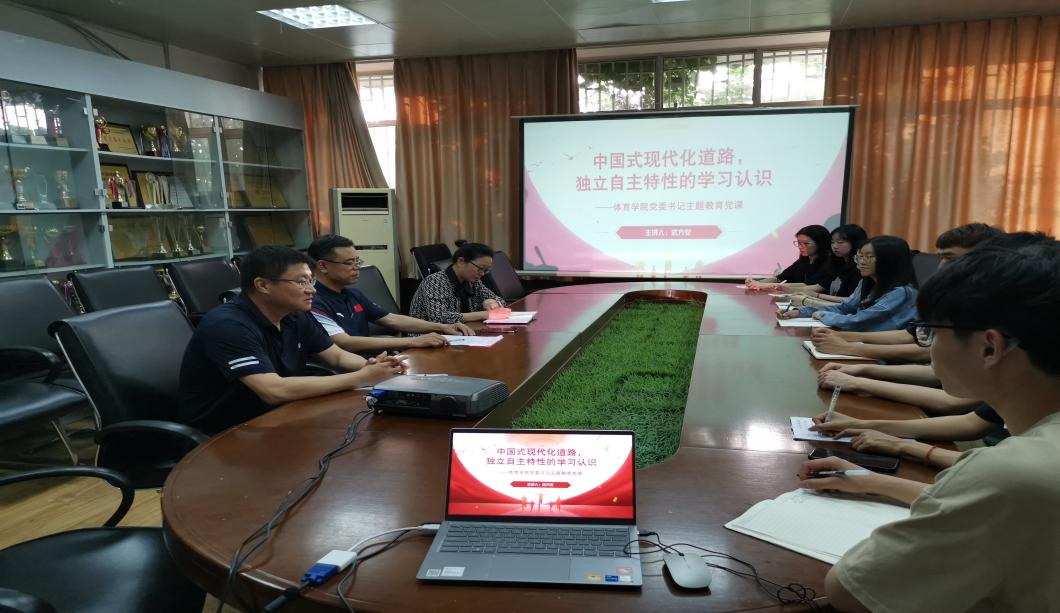 根据学校学习贯彻习近平新时代中国特色社会主义思想主题教育和新时代廉洁文化建设相关工作要求,5月18日下午,体育学院开展了题为“中国式现代化道路,独立自主特性的学习认识”的主题教育和党风廉政专题党课。专题党课由学院党委书记武方安主讲,党委副书记王坤、团委书记刘洪超和学院本批党员发展对象参加了党课学习。
