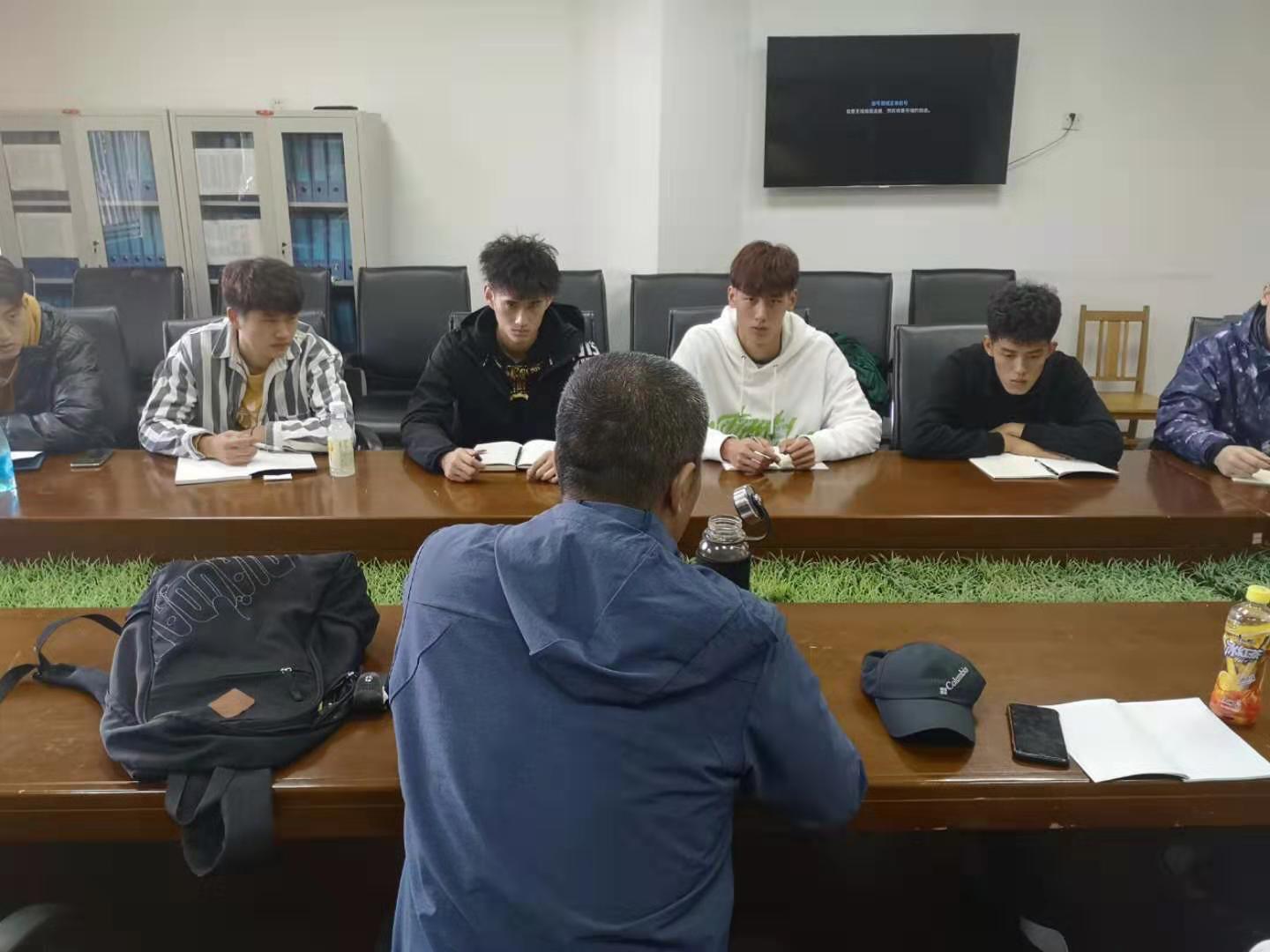 各男排队员认真听取教练的讲解,并把要点记在本子上,供日后反复学习吸收。