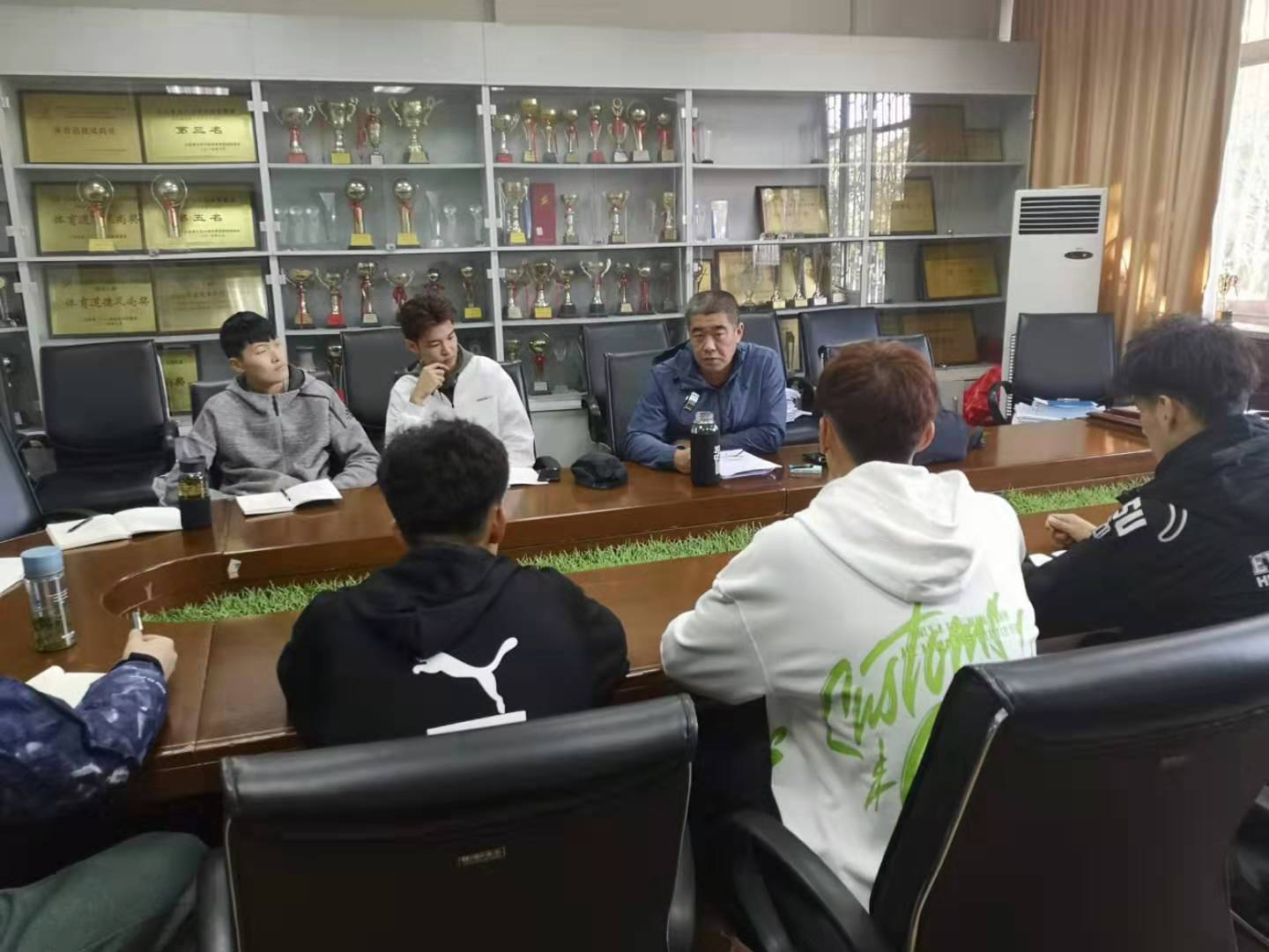 2019年10月25日,山东财经大学男子排球队全员在体育学院会议室展开了关于学习女排精神的讨论和学习,教练员刘立群、丁冬升参与会议并发言。会议中强调各排球运动员不仅要提高体育竞技水平,还要掌握体育理论和精神。