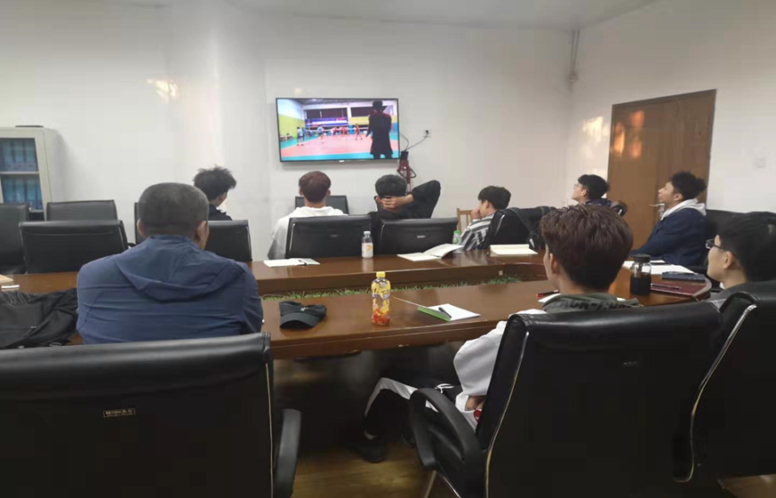 男排队员在学习完女排精神、领会精神要点之后再次观看了近期的排球比赛资料,查找并分析其中存在的问题,进行针对性讨论,为将在十二月份开展的中国大学生北方赛区比赛做准备。