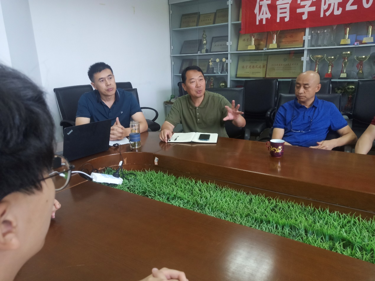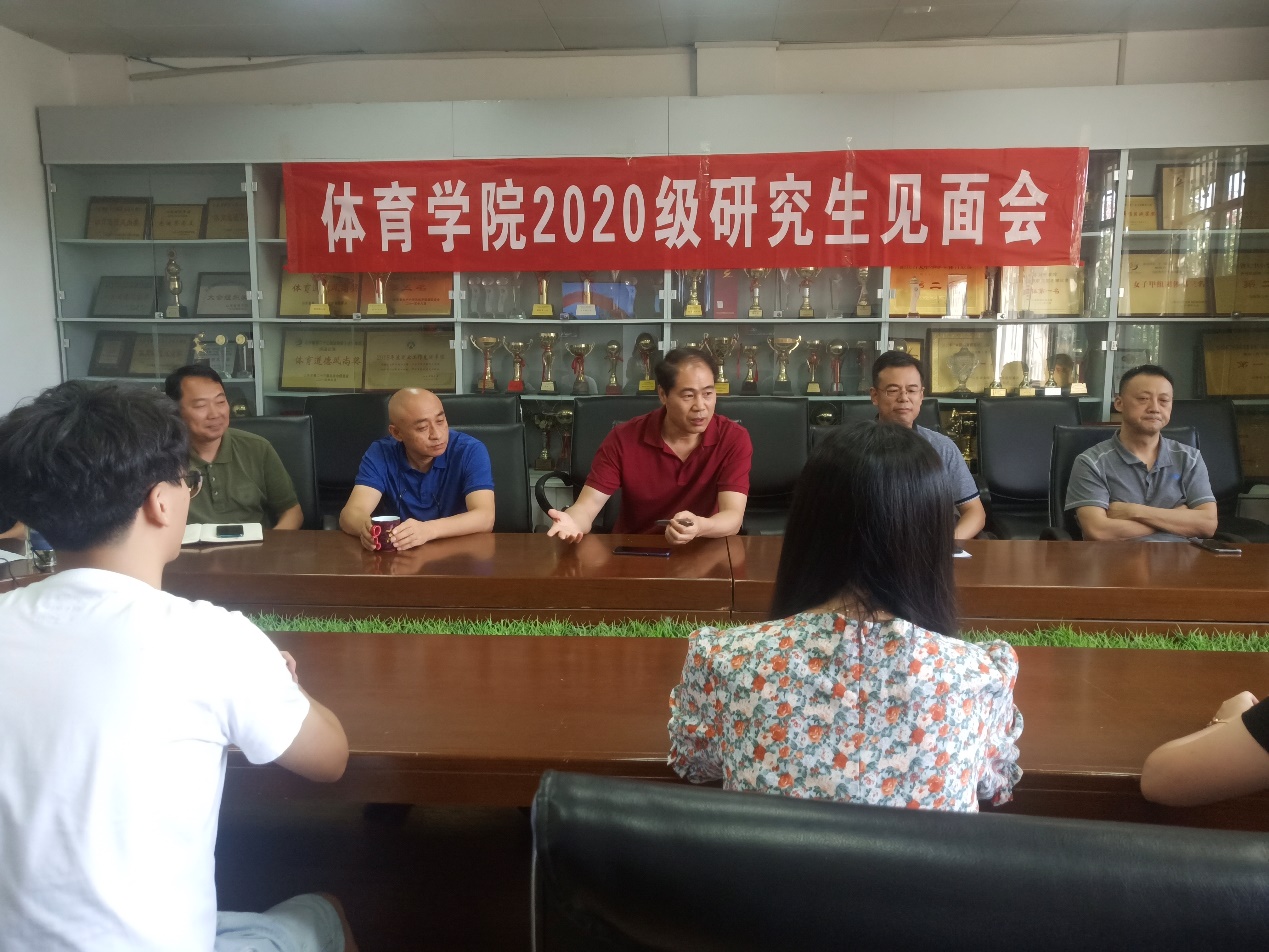 9月4日下午,2020级体育产业管理研究生见面会在舜耕校区体育学院会议室成功举办。体育学院院长付玉坤、党委书记武方安、党委副书记汤长胜、副院长刘景堂、副院长冯兵、硕士生导师谢经良、硕士生导师韩夫苓、学工办主任刘洪超出席见面会,会议由副书记汤长胜主持。