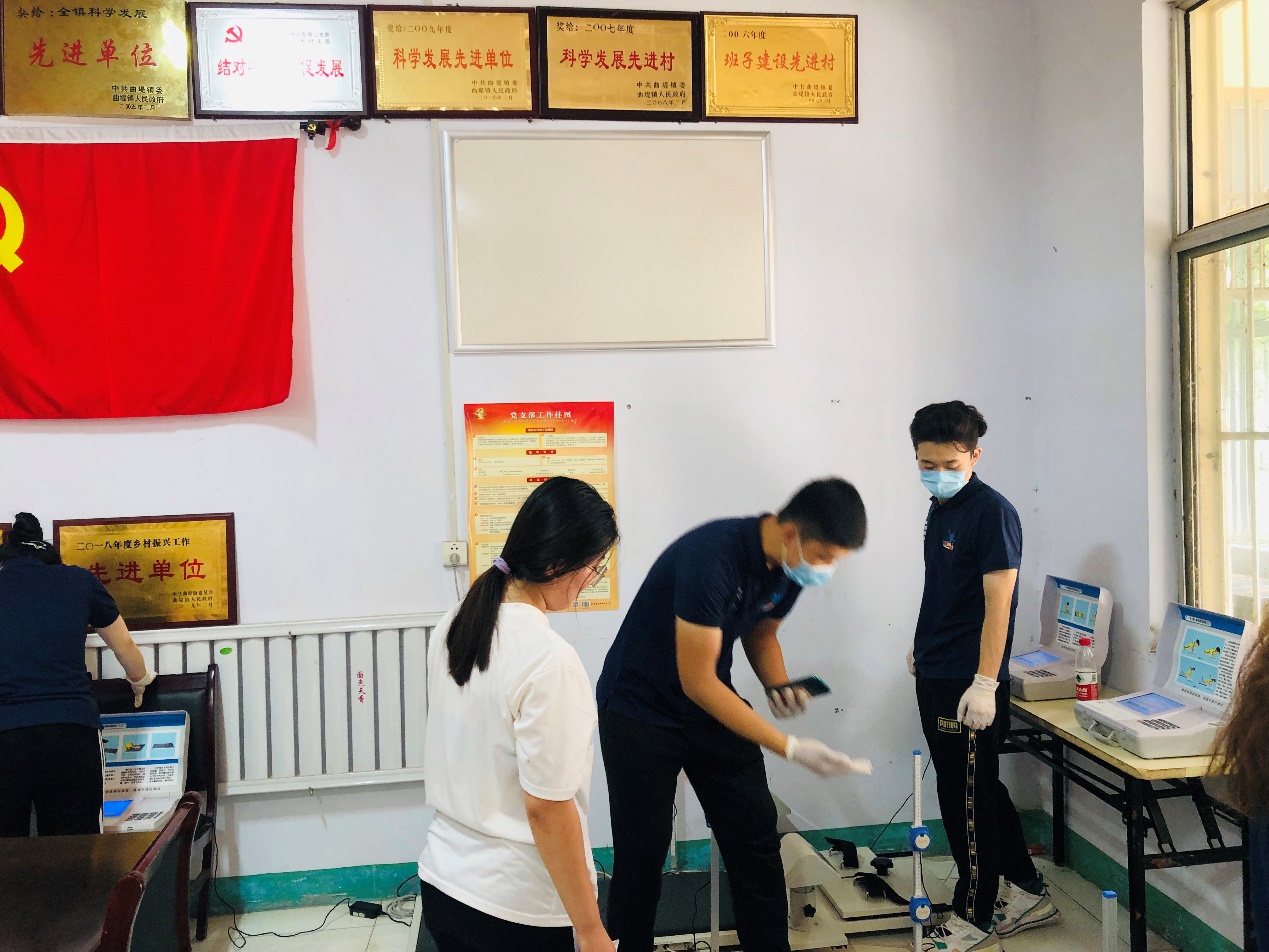 2020年济南市第五次国民体质监测工作的第一站是位于济阳区的五个测试点。在工作过程中,我院学生积极配合各项工作,搬运仪器,布置场地,粘贴横幅。因为是在疫情防控期间,队员们须严格落实防控措施,全程佩戴口罩,虽有汗水浸湿的衣服与口罩,也有蚊虫的肆意骚扰,但大家始终保持高度的激情与动力,没有丝毫怨言。
