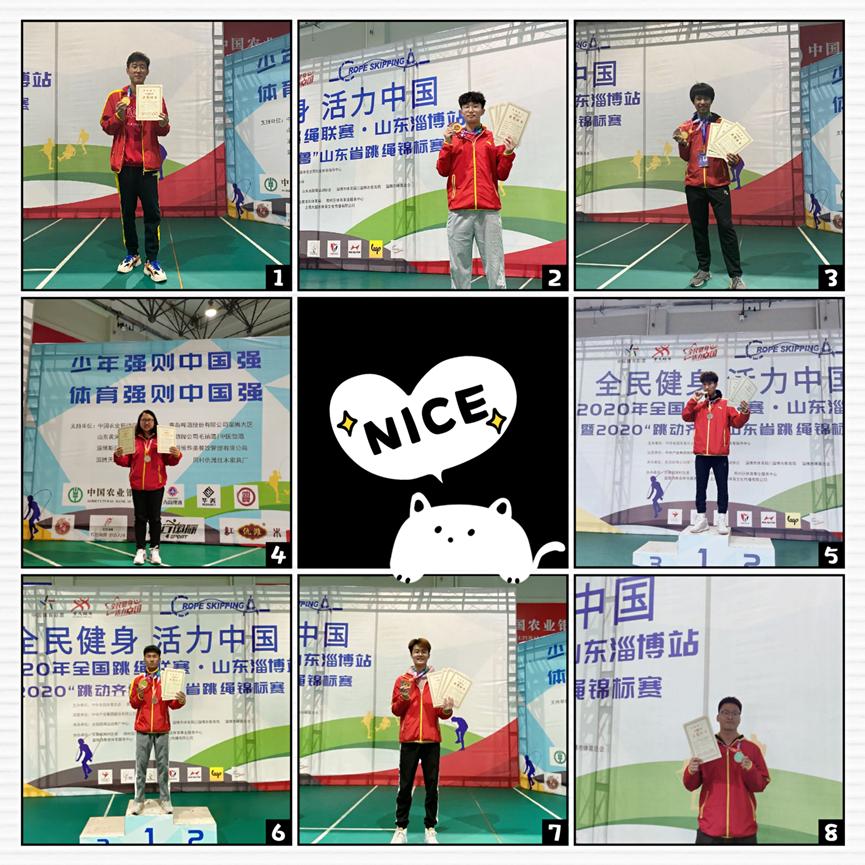 2020年10月17日-18日,“全民健身,活力中国”2020年全国跳绳联赛山东淄博站暨2020“跳动齐鲁”山东省跳绳锦标赛在淄博周村举行。在刘芹芹老师的带领下,我校花样跳绳队10名选手历经两天的辛苦比拼,最终取得了优异成绩。