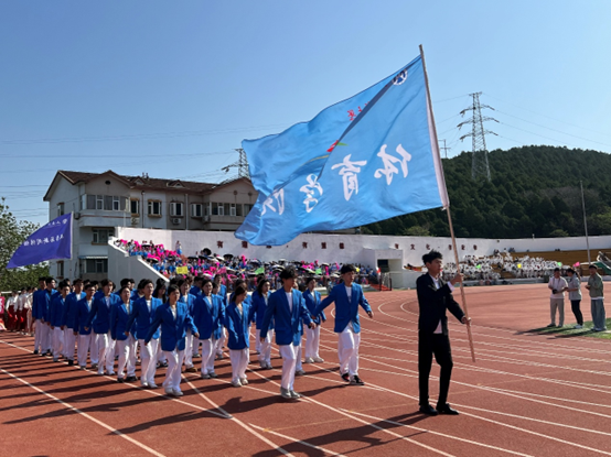 体育学院方队,步伐坚定有力,队形整齐划一,以饱满的热情和自信的笑容走过主席台,高喊口号,挥舞院旗,展现出积极向上的精神风貌。