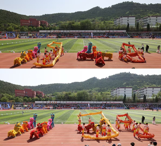 随后的团体操、八段锦、武术、舞龙舞狮等民俗体育表演,由体育学院师生共同编排,巧妙融合了传统体育与现代艺术,成为开幕式的一大亮点。不仅让观众领略到中华传统体育的独特魅力,同时增强了运动会的观赏性和趣味性,更促进了校园体育文化的交流与发展。