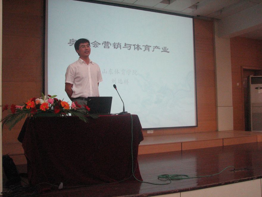 5月31日下午,由学术活动组、校团委、体育学院共同主办的“大学,大学堂”青年博士论坛第19期在燕山校区举行。山东体育学院刘远祥博士应邀为体育学院近200名学生做“奥运会营销与体育产业”的主题讲座,体育学院副院长刘景堂主持讲座。