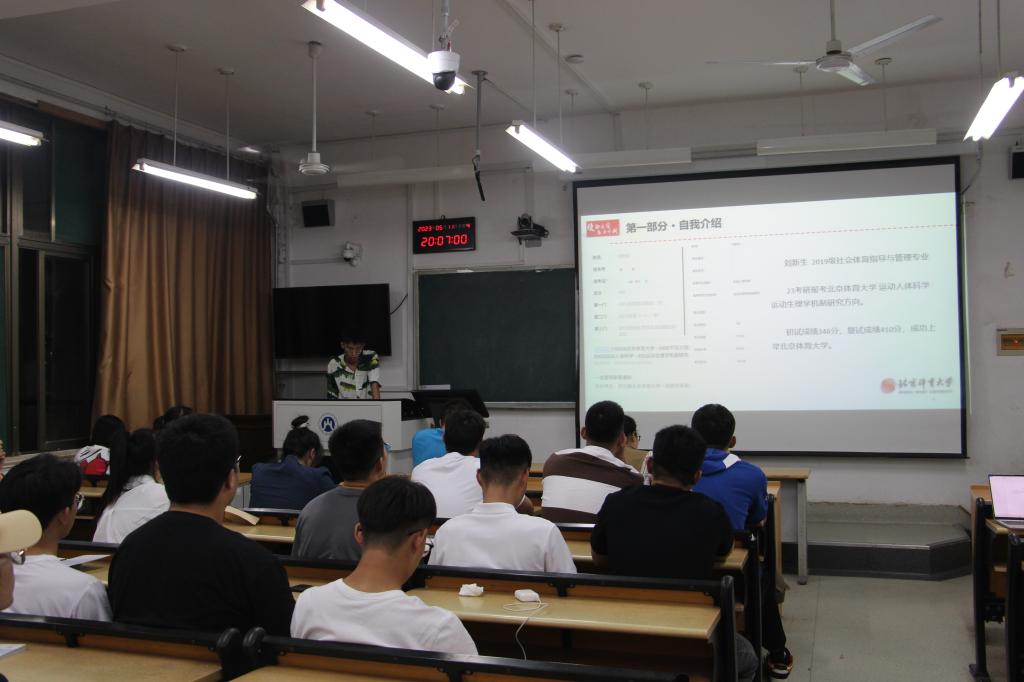 为了帮助低年级同学做好未来职业规划,对国内考研有明确的了解,提升同学们对就业的认知,帮助同学们明确自己的就业去向,5月 11日晚,体育学院在舜耕校区2204教室开展了以“经验传承促交流,优秀学子立榜样”为主题的考研经验交流分享会。会上特邀今年成功考取吉林大学、北京体育大学、中国人民公安大学、首都体育学院、上海体育学院等高校的八名优秀学生代表进行考研经验分享和交流。体育学院党委副书记王坤、学院团委书记刘洪超出席会议,学院20级、21级和22级部分学生参加会议。会议由22级体经1班叶梓涵主持。