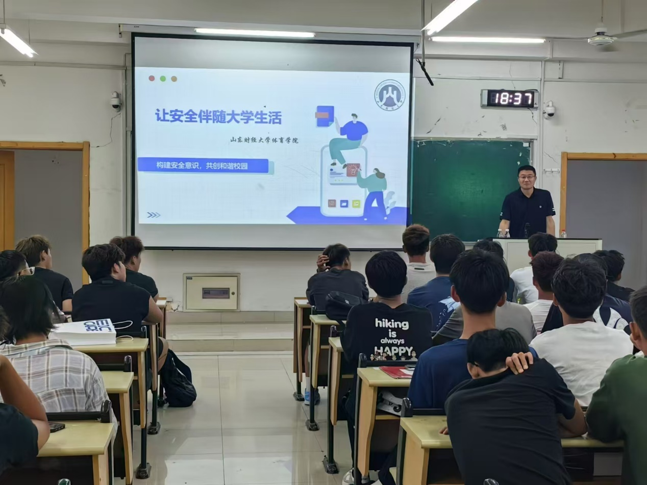 为提升新生安全意识和防范意识,减少危险事件的发生,体育学院于9月4日晚在圣井校区5336教室,开展了主题为“让安全伴随大学生活——构建安全意识,共创和谐校园”的新生安全教育。学工办主任兼团委书记刘洪超出席活动,2024级全体新生参加活动。