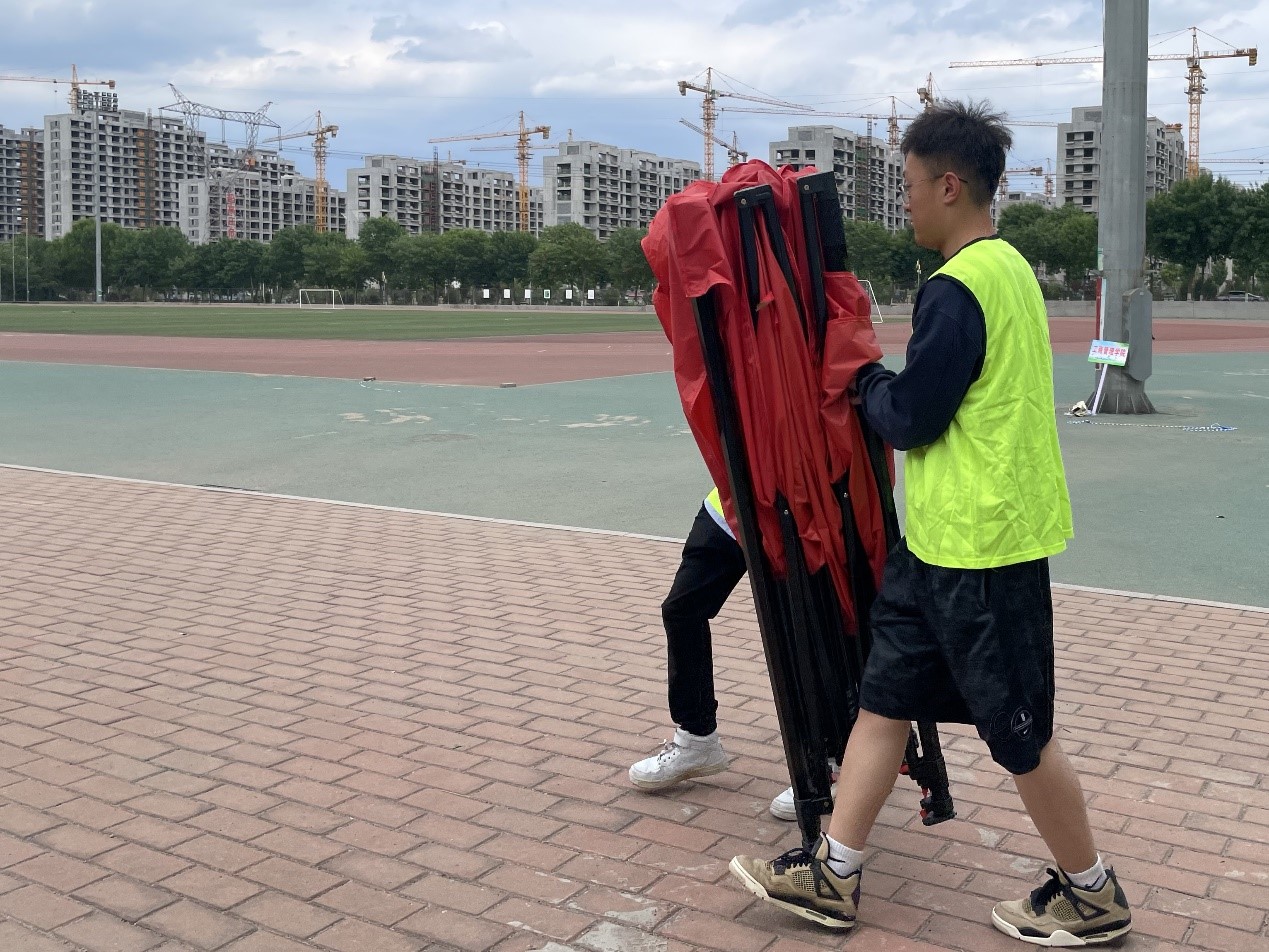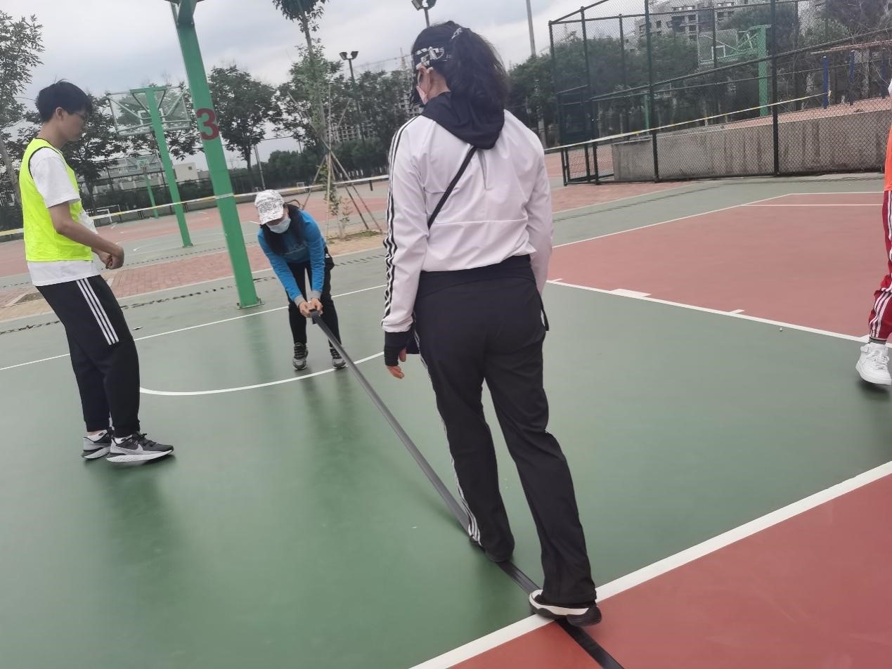 王翠娟老师与曹瑾老师划定比赛区域