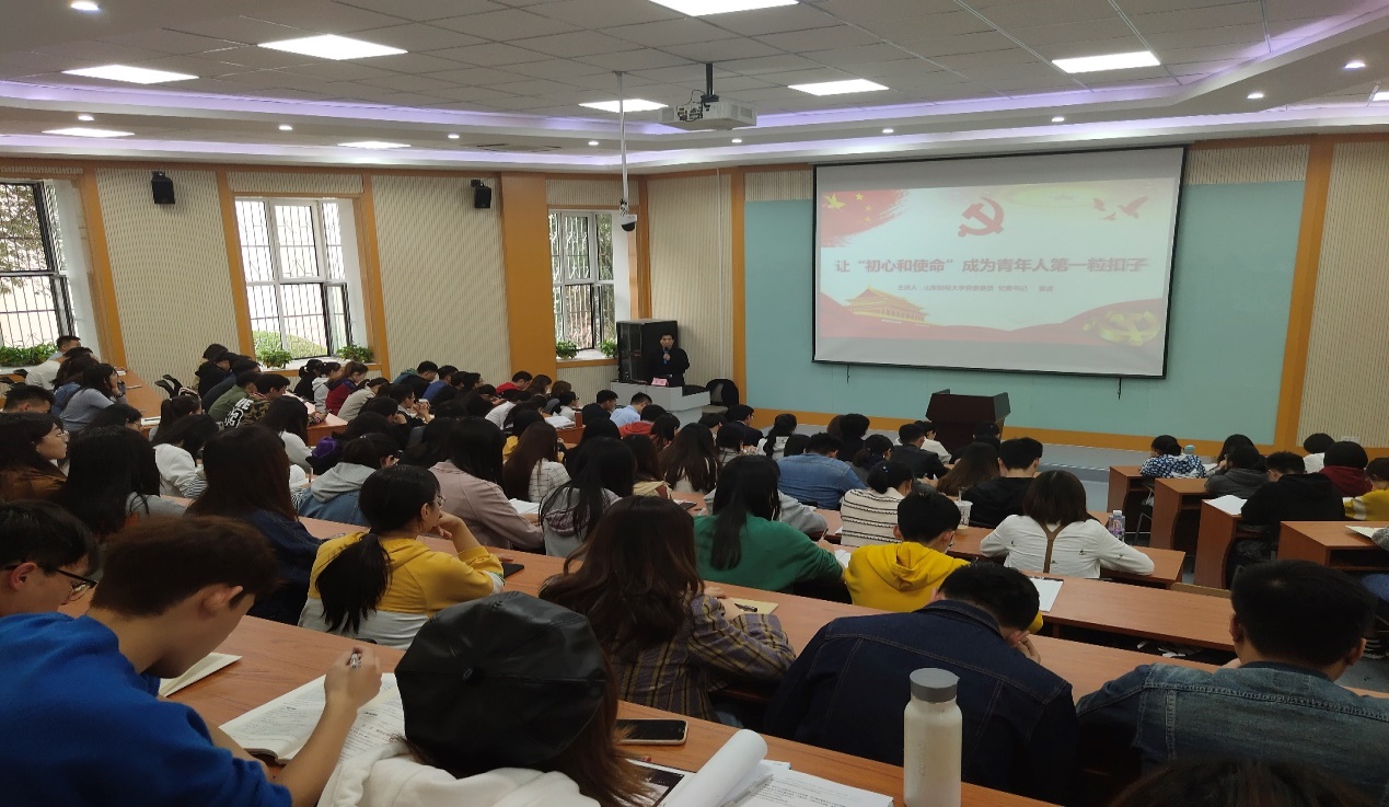 在授课过程中,姜书记将深刻的理论知识,溶合于古今中外,贯穿自己丰富的生活经历,用活泼生动的例子,给同学们讲授了一堂别开生面的党课。授课末尾,姜书记把毛主席对青年人的寄语和习近平总书记的讲话内容作为结束语分享给了在座的同学们。这次党课的成功举办让党员们坚定了自身信念,并对“不忘初心,牢记使命”有了更深切的思想感悟,同时也提高了同学们的政治理论水平和党性修养。