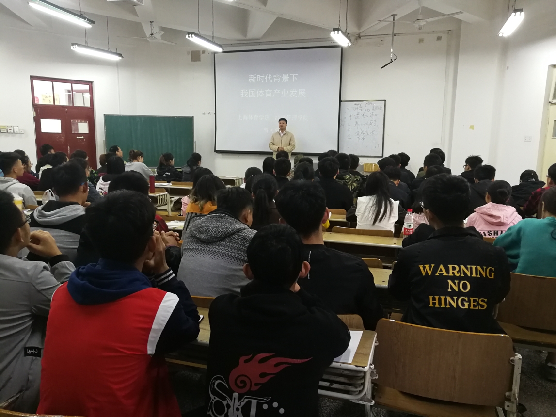 10月11日,上海体育学院经管院院长、博士生导师曹可强教授来到舜耕校区为我院师生做体育产业学术讲座。体育学院党委副书记汤长胜、体育经济与管理系主任丁伟和体育学院17级全体同学出席本次讲座。讲座由体育学院党委副书记汤长胜主持。