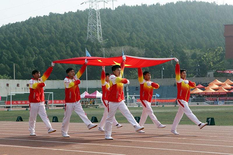 伴随着雄壮的进行曲,在庄严的国旗护卫队引领下,红旗队、花束队、我校各学院学生方队、省财税机关职工方队、我校教工方队高喊嘹亮口号,迈着整齐的步伐依次走过主席台。随后,举行了庄严的升国旗唱国歌仪式。