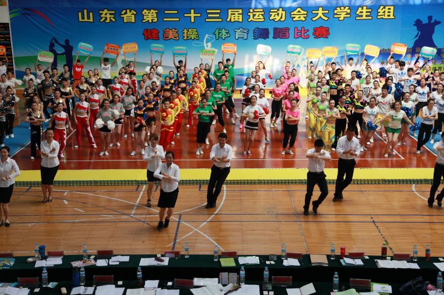 6月27日-30日,山东省第二十三届运动会健美操和体育舞蹈比赛(大学生组)在我校舜耕校区体育馆举行。来自全省39所高校、790名运动员参加比赛,比赛分设甲、乙、丙三个组别进行,其中,甲组为本科院校普通学生组,乙组为高等职业院校、专科院校和独立学院学生组,丙组为本科院校高水平运动员组。