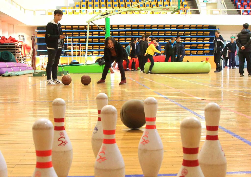 本次趣味运动会设毛毛虫竞速、企鹅漫步、齐心协力、砥砺前行、篮球投篮、足球射门6个团体项目,设趣味保龄球、沙包掷准两个仅限女教职工参加的个人项目。学院全体73名教职工均踊跃报名参加。所有老师以党支部为班底分为六组,成立了六个队,分别是梦之队、无敌队、蚂蚁队、勇士队、龙凤队和行政综合队。经过紧张激烈地比赛,无敌队获得毛毛虫竞速、企鹅漫步、砥砺前行三项第一名,勇士队获得齐心协力第一名,梦之队获得足球射门第一名,行政综合队获得篮球投准第一名。