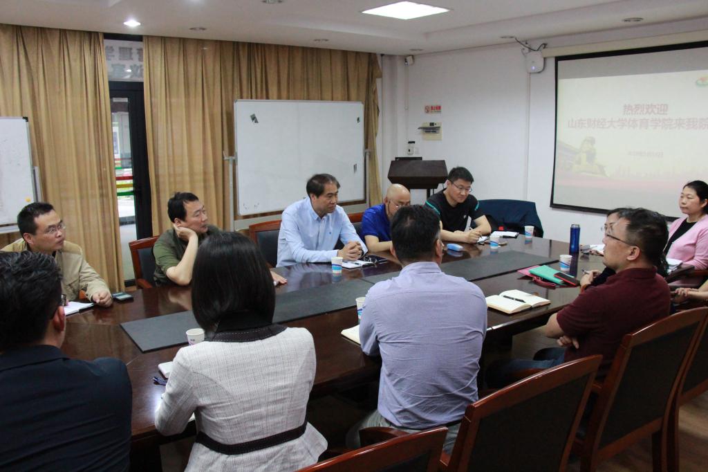 5月16日,院长付玉坤带队赴上海体育学院经管学院学习调研。上海体育学院经管学院院长李海、书记游林、副院长杨倩、副书记王丽娜参加调研会。会上,付玉坤从专业设置、学科建设、师资队伍、发展规划等方面对我院做了介绍,李海院长对上体经管学院的概况做了介绍,杨倩副院长对经管学院学科建设、师资队伍等方面做了介绍。经过热烈的讨论,双方一致同意今后加强交流合作,互学互鉴,全面提升办学水平。会后,在杨倩副院长的陪同下,与会人员参观了上海体育学院场馆管理实验室。调研期间,学院领导看望了在上体读研的我校毕业生,领导们对辛飞同学在《体育科学》核心期刊上发表一篇论文表示了祝贺,对同学们在读研期间的学习生活及未来的发展提出了殷切期望。