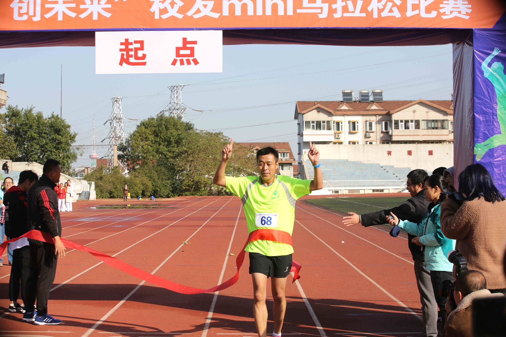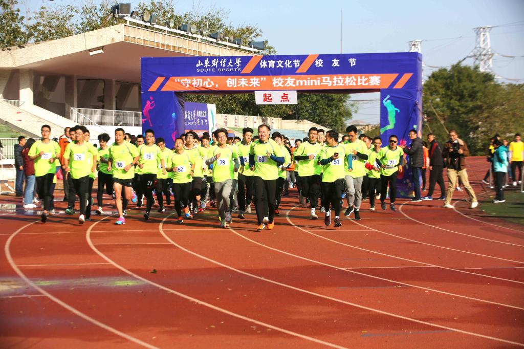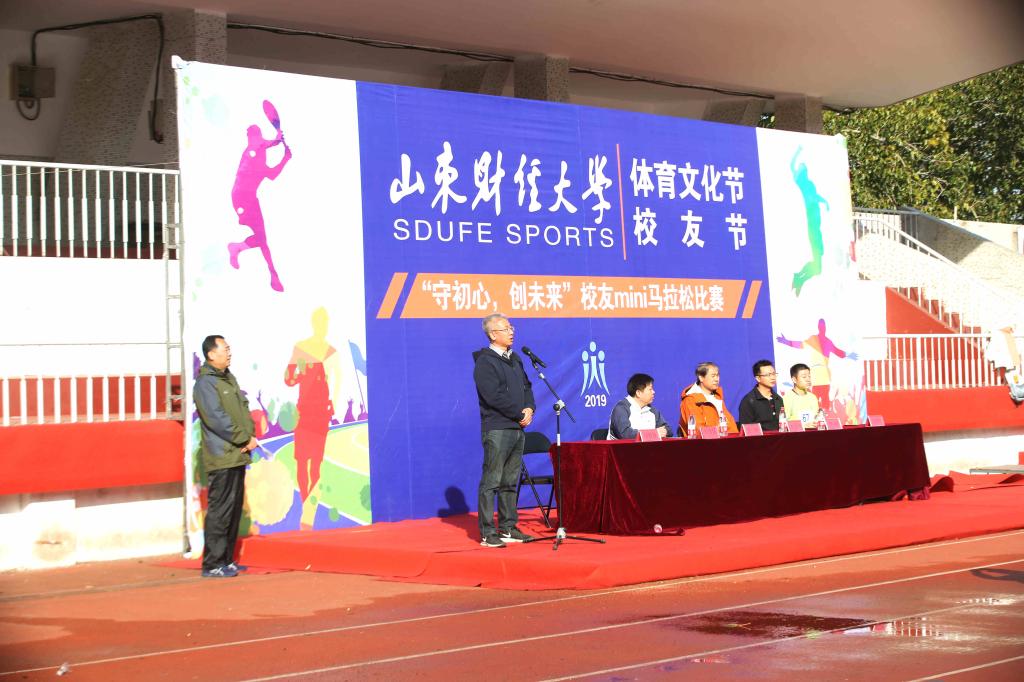 11月10号上午,校友迷你马拉松在山东财经大学舜耕校区田径场正式拉开序幕。本次活动由山东财经大学、山东财经大学校友总会主办,由体育学院承办。山东财经大学副校长张新,体育学院院长付玉坤,合作发展处(校友工作办公室)处长刘奇耀,副处长徐超、邵伟然出席本次活动并为获胜者颁奖。开幕式由体育学院党委副书记汤长胜主持。