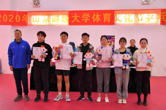 11月14日—15日,山东财经大学2020体育文化节乒乓球比赛在圣井校区乒乓球馆落下帷幕。比赛由体育学院、学生工作部(处)、校团委、教务处主办,乒乓球竞赛组、校学生会、校乒乓球协会协办。体育学院副院长冯兵出席闭幕式并为获奖队伍颁奖。