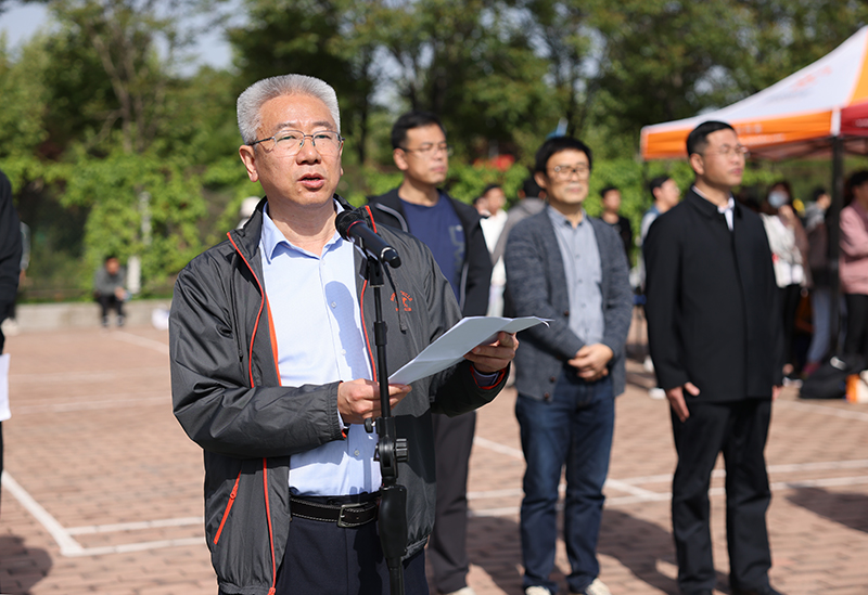 庄严的升国旗仪式后,副校长张新出席开幕式并讲话。他简要回顾了2020年学校统筹推进新冠肺炎疫情防控和学校改革发展各项工作。他指出,学校事业的发展需要广大师生具有强健的体魄,坚强的毅力和永不服输的精神。体育运动不仅增强体质,更重要的是展现体育精神,弘扬体育文化。学校自2019年举办首届体育文化节以来,贯穿全年的校园体育竞赛掀起了师生健身的热潮,形成了良好的校园体育文化氛围。希望全体师生积极参加丰富多彩的体育文化活动,希望运动员赛出风格、赛出水平,在赛场上展豪迈激情,于奋斗中扬梦想之帆。全体人员要以良好的精神风貌和高尚的体育道德,取得比赛成绩和精神文明的双丰收。