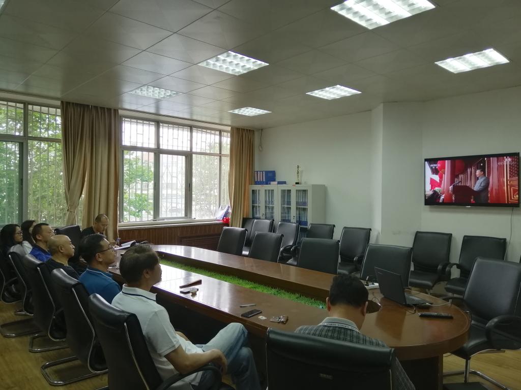 庆祝中国共产党成立100周年大会7月1日8点在北京天安门广场隆重举行。中共中央总书记、国家主席、中央军委主席习近平出席大会并发表重要讲话。体育学院领导班子成员武方安、付玉坤、汤长胜、刘景堂、冯兵;学院党委理论中心组成员;各党支部书记、副书记、委员以及部分党员和教师代表在会议室进行了集体收看庆祝中国共产党成立一百周年大会。其它教职工党员和学生党员也以各种方式在线同时进行了观看纪念活动,共庆中国共产党百年华诞。