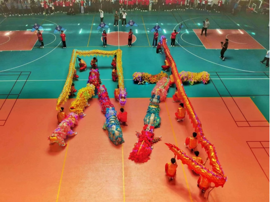 李峰宣布运动会开幕后,我校的舞龙舞狮舞剑和啦啦操队进行了精彩的表演。