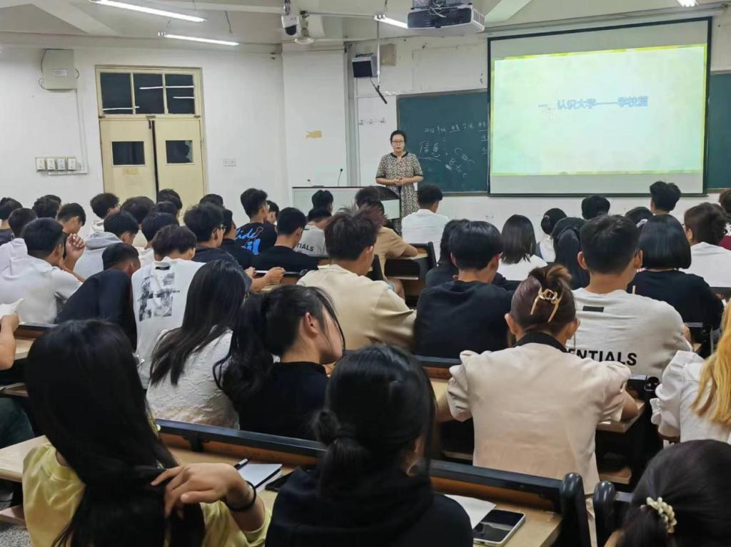为了帮助新生做好职业规划,王坤通过一个生动的故事“四只毛毛虫的故事”引导学生要对自我进行重新定位,不断坚定目标,勇于探索,实现理想和人生价值。她还从每个专业的就业去向、就业领域等向同学们说明体育相关专业的就业前景,鼓励大家夯实基础,不断的学习和提高自己的综合素质,以适应不断变化的市场需求和社会环境。她给同学们分享了近三年学院毕业生就业及升学情况、学校国际交流和访学项目情况、学校研究生推免等情况,鼓励新生通过多种途径积极升学深造,参加国际交流访学项目,制定短期和长期目标,树立正确的职业观,做好职业生涯规划,不断提升综合素质和能力,为将来步入社会打下坚实的基础,为学院高质量发展贡献自己的力量。