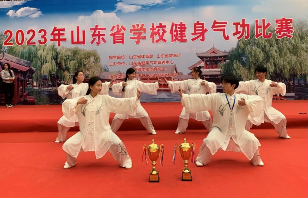我校六名运动员参加集体易筋经和集体八段锦比赛。参赛队员刻苦训练、精心备战,在赛场上经过紧张、激烈的角逐,我校健身气功代表队荣获健身气功–八段锦集体项目比赛一等奖,健身气功–易筋经集体项目比赛以本次比赛所有项目最高分的优异成绩获得一等奖。