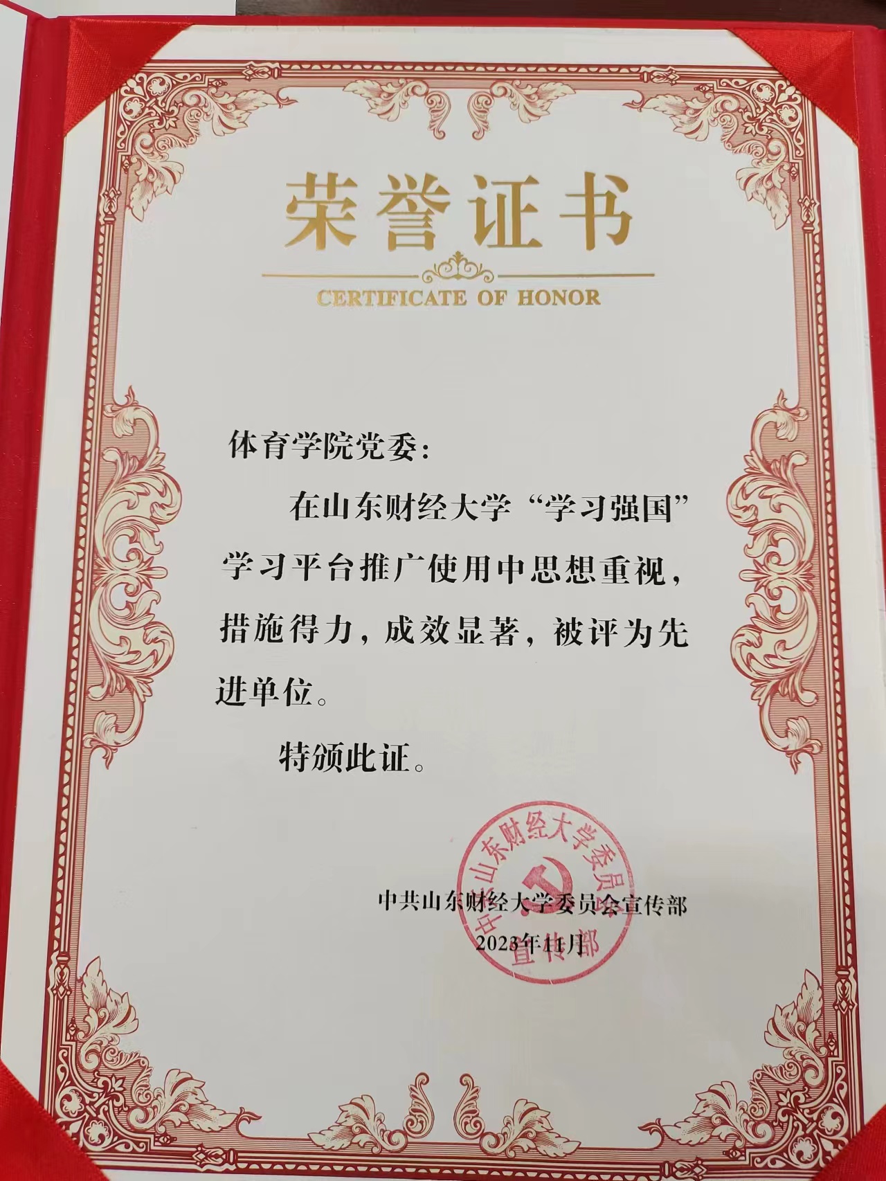 在山东财经大学2023年“我与‘学习强国’的故事”征文比赛中,学院党委高度重视,师生积极参与,共投稿33篇。经校内外专家匿名评审,程亚红荣获教师组一等奖,王坤、王猛、周荣凯荣获教师组三等奖;孙蒙蒙荣获学生组一等奖,姜培祥、李金哲荣获学生组三等奖。