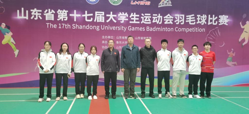 11月5日至12日,山东省第十七届大学生运动会羽毛球比赛在烟台丛和体育文化产业有限公司隆重举行。比赛由山东省教育厅、山东省体育局主办,鲁东大学承办,山东省学校体育协会协办,我校羽毛球队在山东大学、中国石油大学(华东)、青岛大学等36支高校代表队中脱颖而出,在甲组比赛中勇夺女子单打亚军等多项荣誉。我校羽毛球队由体育学院李刚副院长(主持工作)领队,江明世和张海峰教练带队,共有9名队员参赛。