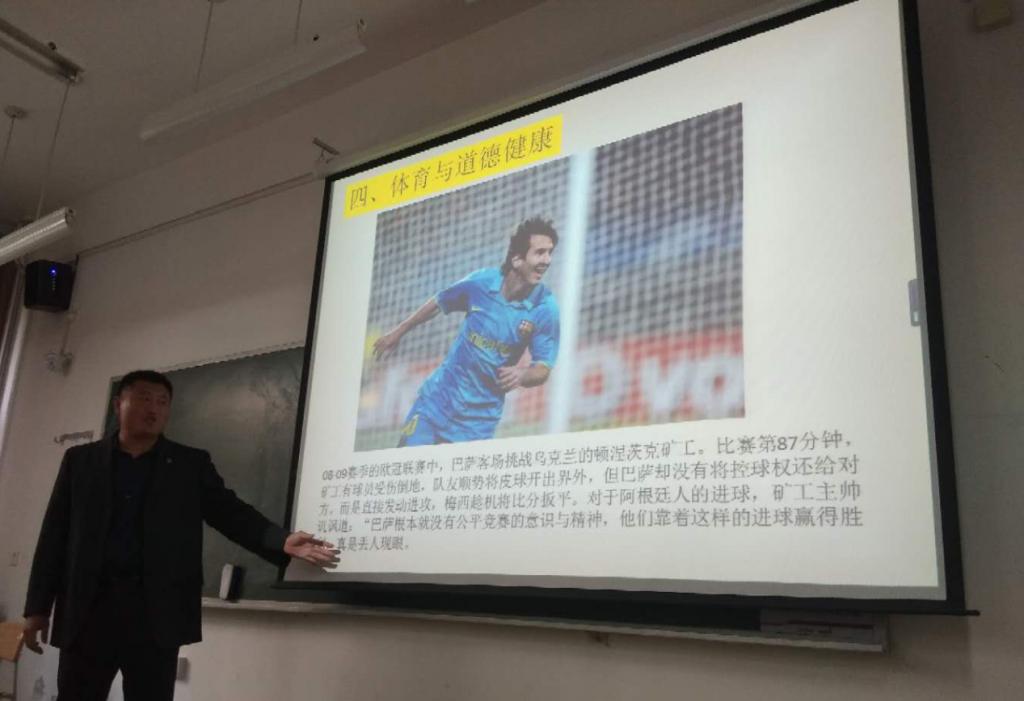孙宝聪老师分别从“体育与躯体健康”、“体育与心理健康”、“体育与社会适应能力”以及“体育与道德健康”四个方面对讲座主题进行了阐述,认为一个朝气蓬勃的快乐的人,有所爱,也被人爱,满怀信心的面对人生的挑战,满腔热情地投入自己的工作,发挥自己的全部潜能。能够洞察外部世界,并对自己遇到的挑战做出应对,制定出合理的人生策略。不随意夸大也不贬低自己的能力,对自己和他人的评价都建立在现实的基础上。体育运动可以促进这样的人更加全面健康,越来越多的人也都参与到体育运动之中,并且从中受益匪浅。