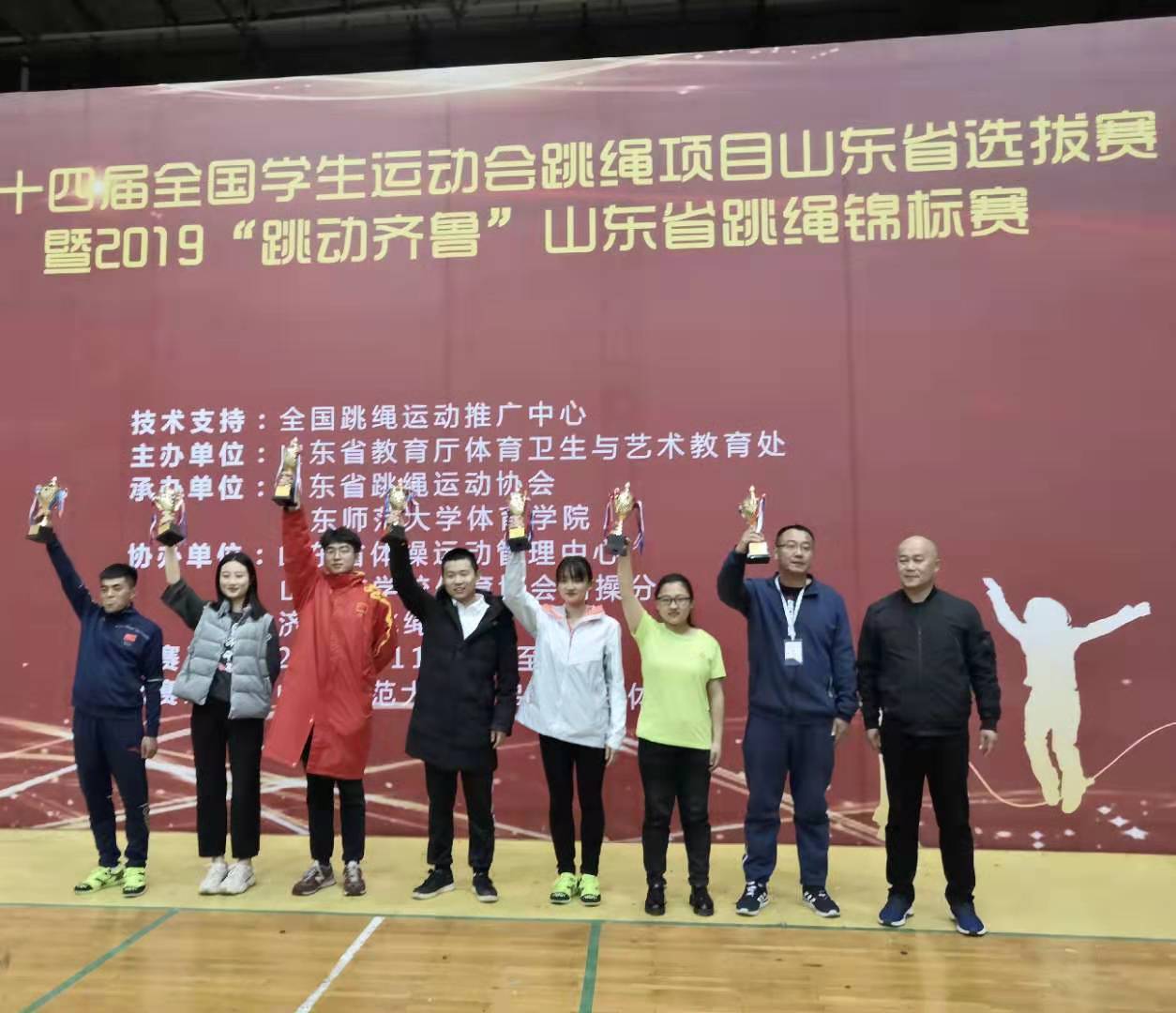 2019年11月9日至10日,2019“跳动齐鲁”山东省跳绳锦标赛在山东师范大学千佛山校区举行。在本次比赛中,我校花样跳绳协会组织队员参加了大学专业院校组和大学普通院校组的比赛。在刘芹芹老师的指导下,参赛队员经过长时间的训练,攻克了众多技术难点,最终不负众望,在比赛中取得了优异成绩。