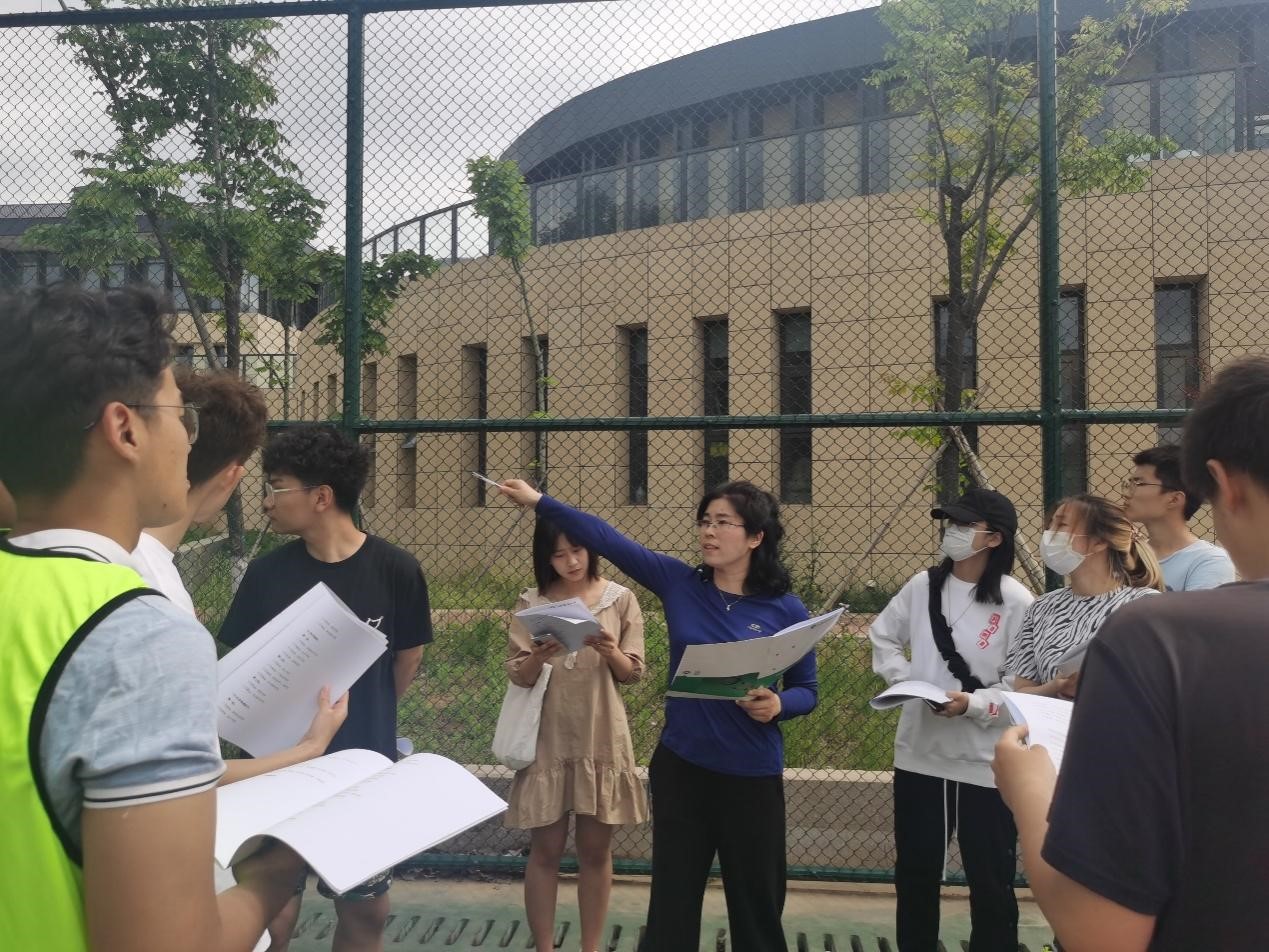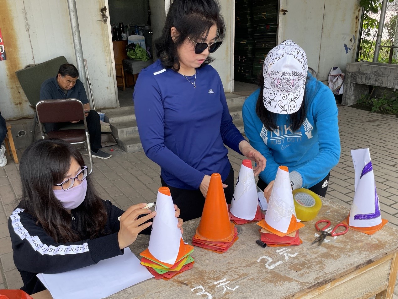 王翠娟老师与曹瑾老师划定比赛区域