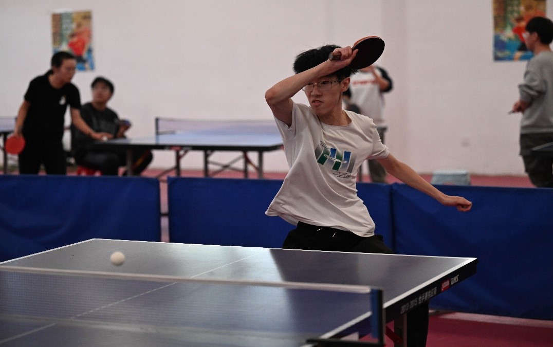 本次比赛共有16支学院代表队150余名选手参赛,比赛现场可谓是热火朝天,扣人心弦。小小乒乓球在球桌上疾速来回,选手们眼疾手快,纷纷拿出了“大招”应对:发球、抢攻、防守、扣杀……参赛选手们挥汗如雨、手握球拍、你推我挡、不断变换着战术和打法,充分展现了昂扬向上的精神风貌。