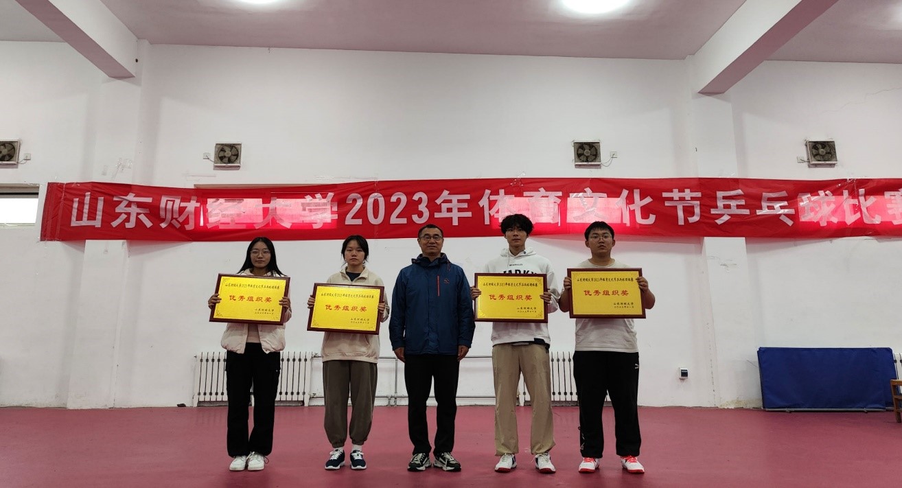 千里秋风丹桂,万般美景盛世。沐浴着秋日暖阳,2023年11月4日至5日,山东财经大学2023年体育文化节乒乓球比赛在圣井校区举行。本次比赛由体育学院、学生工作部(处)、校团委、教务处主办,乒乓球竞赛组、校学生会、校乒乓球协会协办,旨在丰富校园文化生活,鼓励同学们强身健体,团结进取,勇于突破。体育学院副院长韩夫苓到现场为获奖学院颁奖。