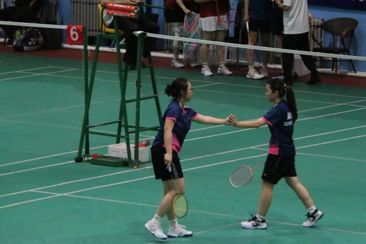 甲组女子双打金牌 22级会计学院 李若嘉(左)24级统计与数学学院 吴佳仪(右)