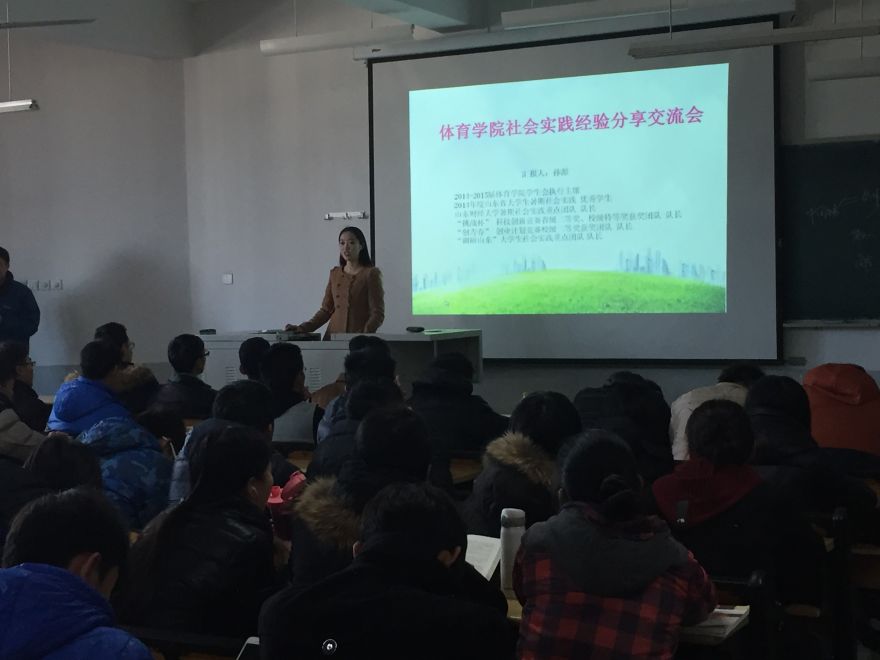 2015年12月17日下午2:00—3:30,体育学院“三千计划”实践归来话感受交流会在我校舜耕校区1501教室如期举行,体育学院的两只校级重点团队济南“新乐活”健身会所不同人群体育需求调研团队和山东财经大学体育学院“运动部落”实践团队分别作了交流汇报,来自我院和其他学院共计140多名同学到场参加了交流会,交流会上,两只校级重点实践团队分别就大学生参与实践与服务活动的意义和价值、社会实践选题的技巧、撰写调研报告的格式要求以及实践过程中注意事项等经验体会与大家作了深入的交流,通过交流会,与会的同学对参与暑期社会实践产生了浓厚的兴趣,并向到场的实践团队成员们提出了相关问题,加深了对社会实践过程的认识。通过实践归来话感受交流会,带动了广大同学,特别是低年级同学积极参与到社会实践中来,为今后促进学生接触社会、了解社会、认识国情、增长才干打下坚实的基础。