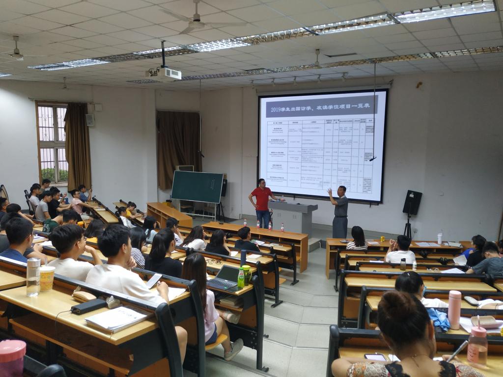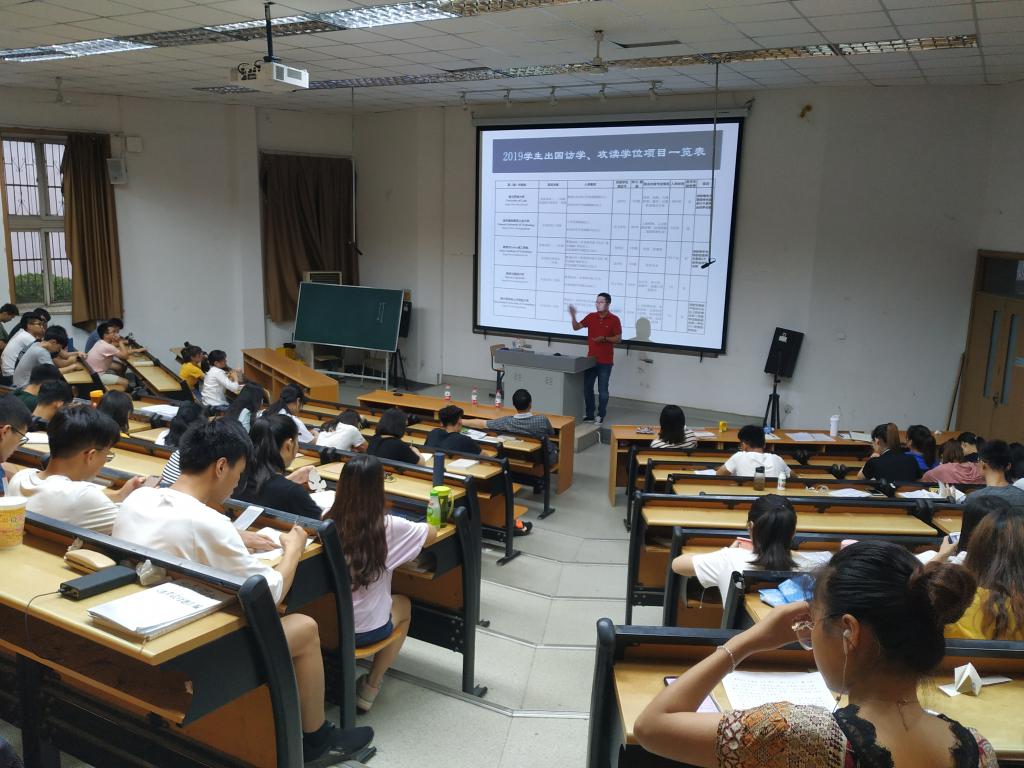 在宣讲会进行过程中,汤书记还向大家讲述了各大名校出国留学学生的比例,强调了当前世界国际化的趋势和出国留学的优势,并鼓励大家积极向老师们提出自己的疑问。