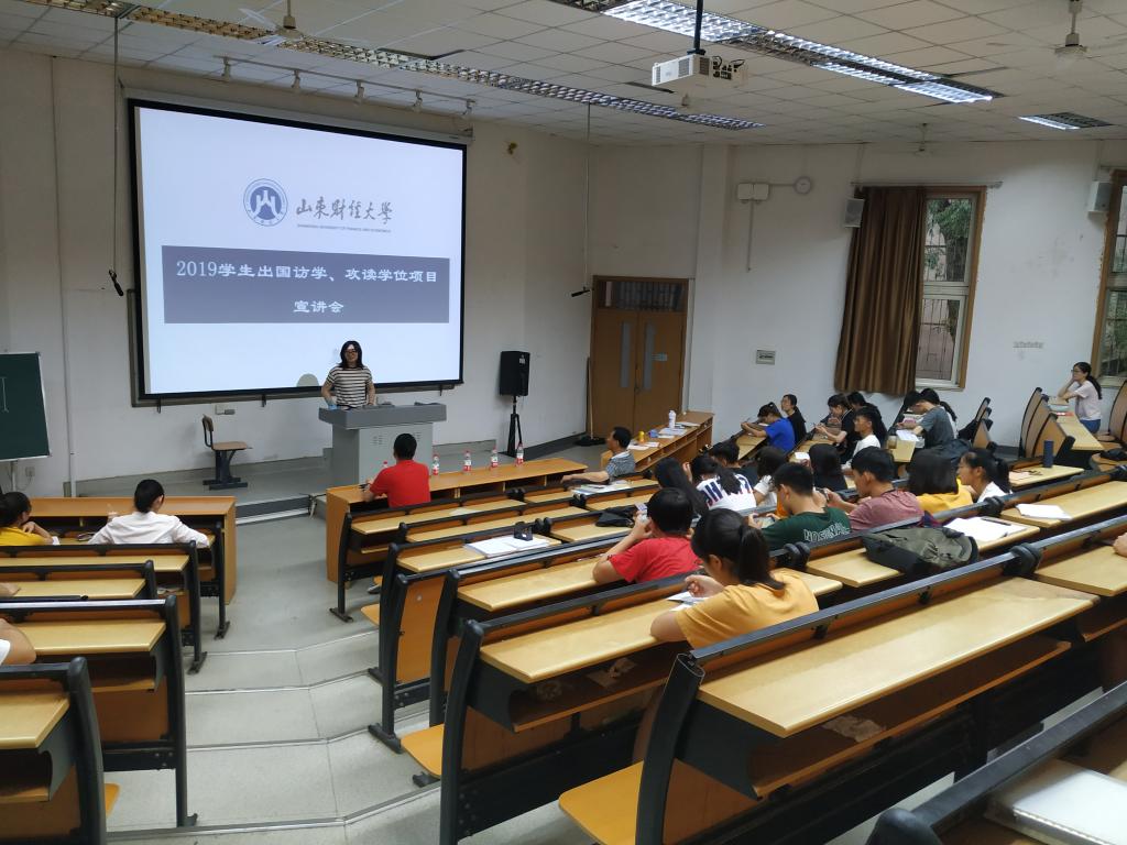 6月5日晚,以“人才培养国际化的视野与路径”为主题的宣讲会在我校舜耕校区第三阶梯教室成功举办。来自国际交流与合作处的宋晓、张岩两位老师到场与大家分享了出国访学方面的要求及经验,也把我校比较成熟的出国攻读学位项目为大家做了深入介绍。体育学院党委副书记汤长胜,团委书记刘洪超参加了宣讲会。