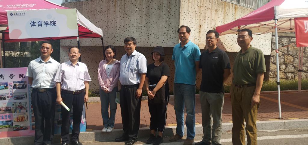 之后山东财经大学校长赵忠秀、校党委副书记赵友春、学生工作处处长王剑来到迎新现场了解学院的迎新情况,并且对我院迎新工作表示肯定,此外,还希望我院学生在专注学业的同时多参加体育活动,为其他学院做榜样。