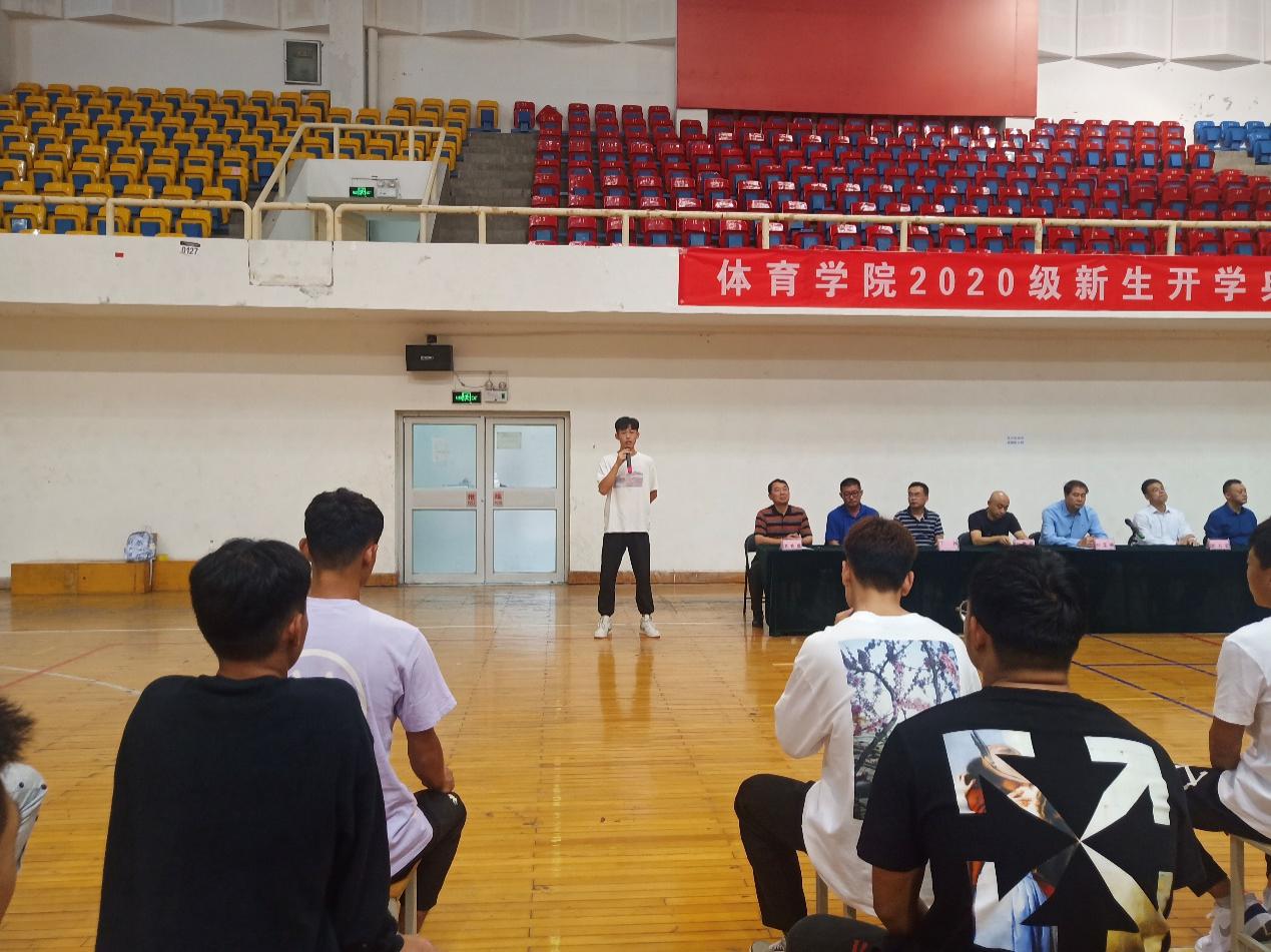 研究生新生代表李沛鑫同学回顾了自己考研的奋斗经历,与新生共勉,并表示未来要在学术研究上刻苦钻研,脚踏实地,自立自强。老生代表2019级社会体育指导与管理1班关卓凡同学向大家提出“最好的大学,在你们心中”,鼓励大家抓住机遇,辛勤奋斗,开启属于自己的一片天!新生代表2020级体育经济与管理1班张敏同学表示十分期待学习体育相关知识,并对自己未来大学生活提出严格要求。