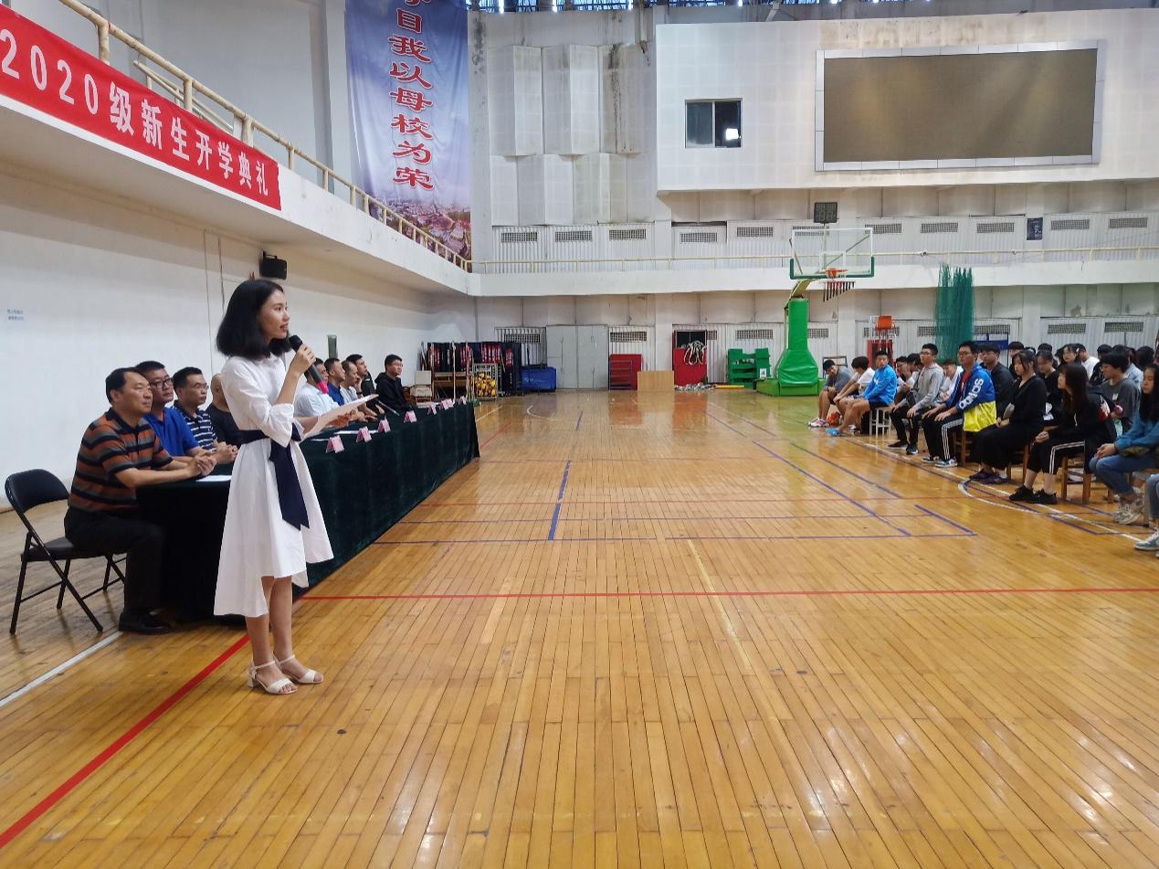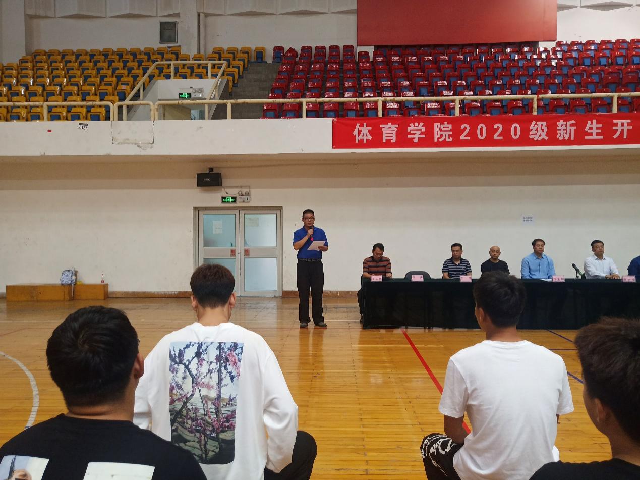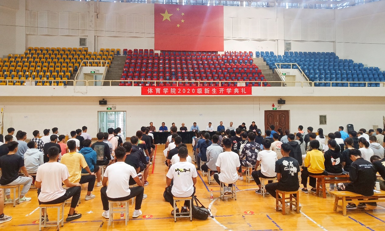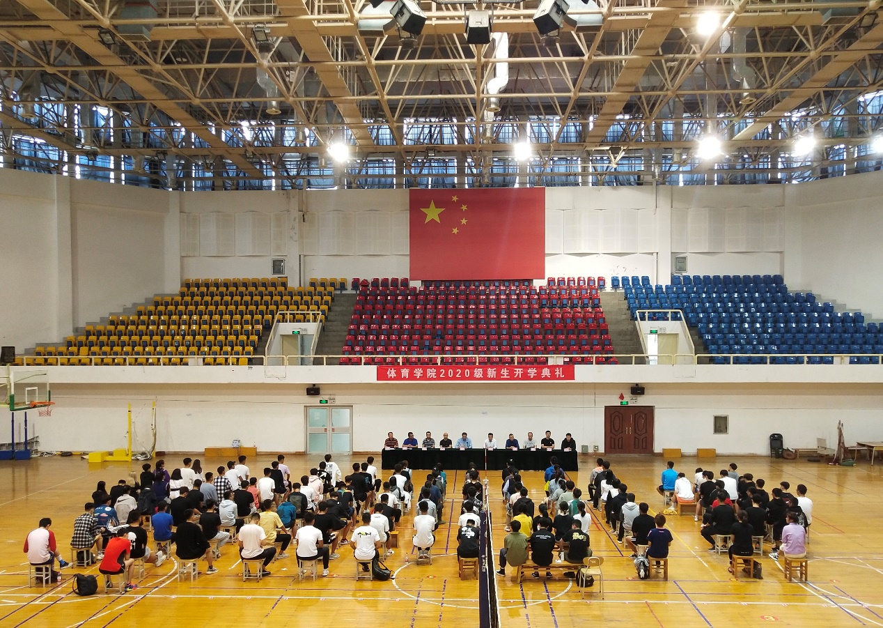 9月24日下午,山东财经大学体育学院2020级新生开学典礼在舜耕校区体育馆举行。体育学院院长付玉坤、党委书记武方安、党委副书记汤长胜、副院长刘景堂、副院长冯兵、体育经济与管理系主任丁伟、社会体育指导与管理系主任孙锋、实验室主任谢经良、团委书记、学工办主任刘洪超、教师代表崔涛出席本次开学典礼,典礼由党委副书记汤长胜主持。