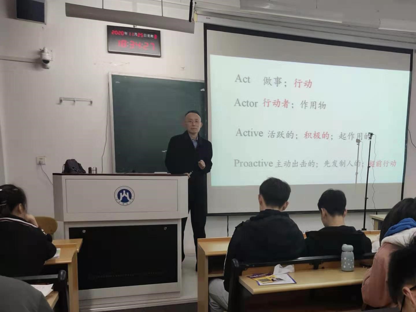 陈寒松教授用“proactive=c位”为切入点开始了本次讲座。陈教授强调,创业是一种选择,更是一种行动,只有历经创业风雨,才能见到事业成功的彩虹。他指出只有我们具备了创新创业的能力和做好了充足的准备才有可能在这条路上有所成就。同时,陈教授也分享了他指导创业的经验,让我们加深了对创新创业的认识,这为我们今后进行创新创业奠定了理论基础。