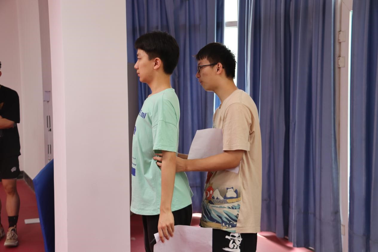 与此同时,王丽娜老师和聪聪老师也在指导学生进行体态监测,从实践活动中切身观察评估自己的体态问题,方便与老师们进行及时沟通。