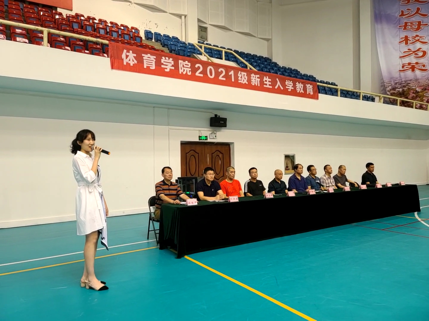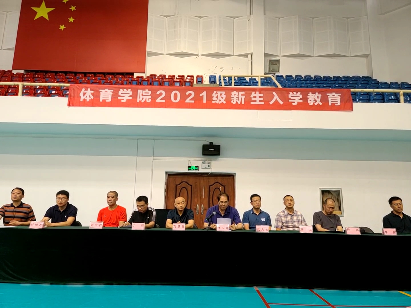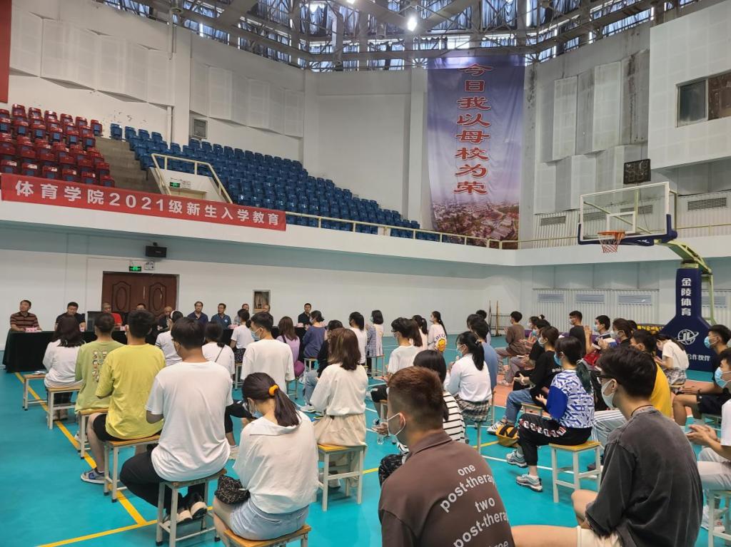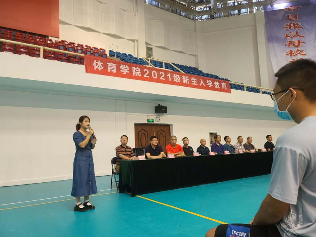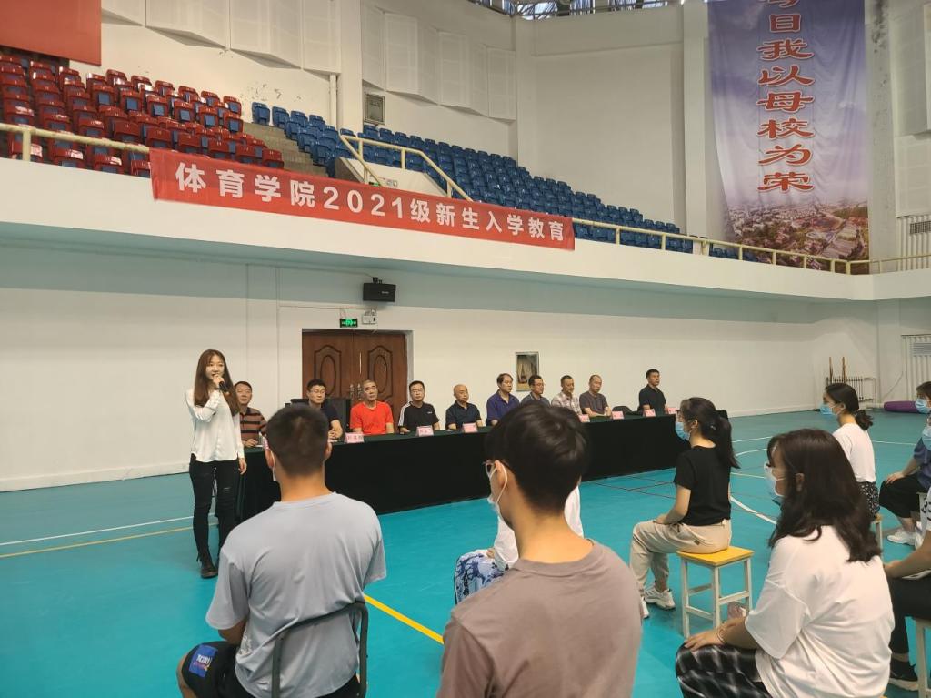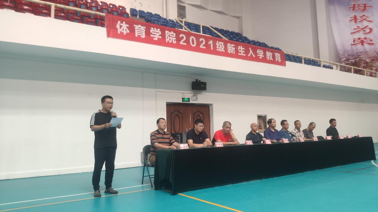 秋入云山,物情潇洒。9月16日下午,山东财经大学体育学院2021级新生入学教育在舜耕校区体育馆举行。体育学院院长付玉坤、党委书记武方安、党委副书记汤长胜、副院长刘景堂、副院长冯兵、体育经济与管理系主任丁伟、社会体育指导与管理系主任孙锋、竞赛训练教研室主任刘立群、实验室主任谢经良、团委书记、学工办主任刘洪超出席本次会议,会议由党委副书记汤长胜主持。